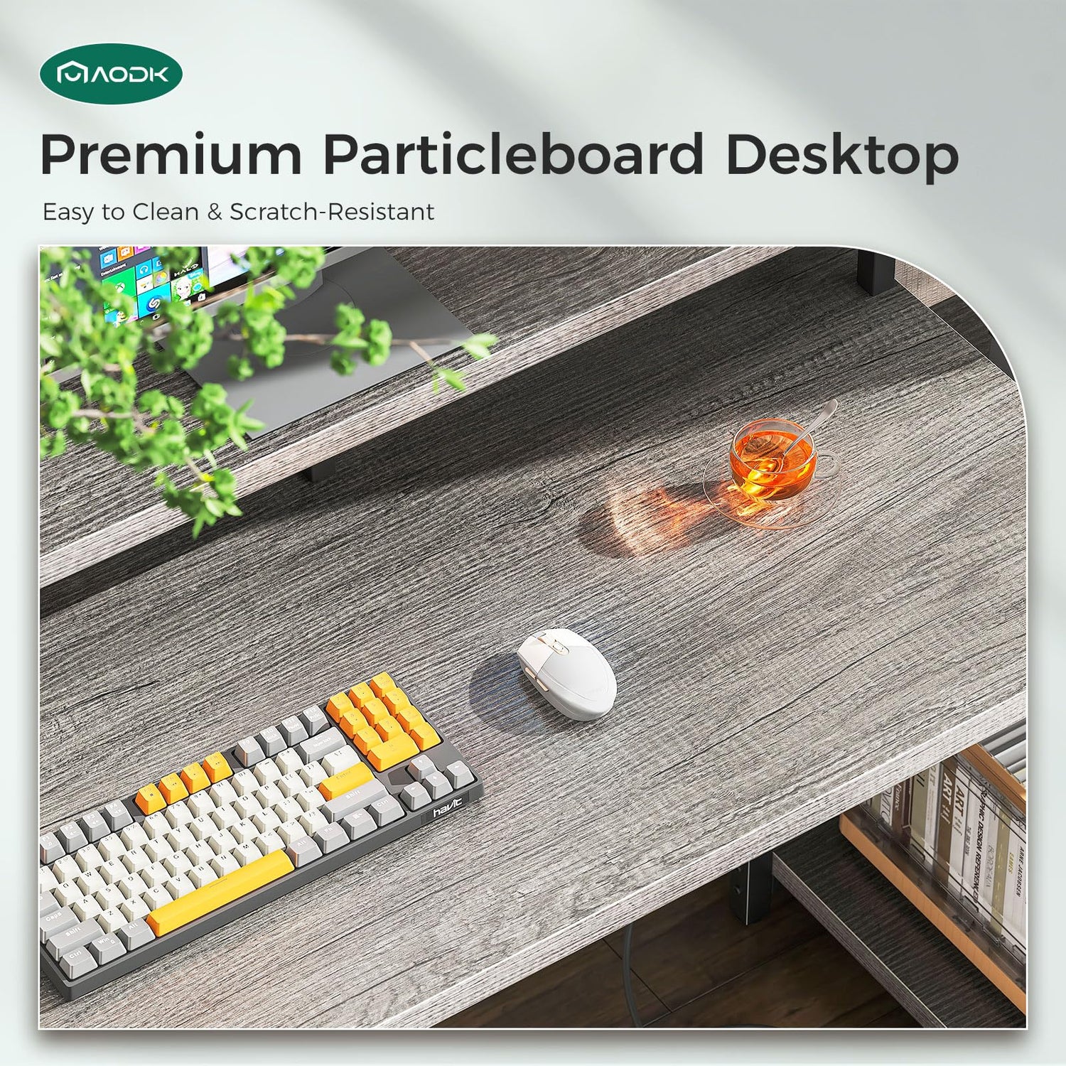 - ✔Sturdy Desk with Premium Particle Board: This PC desk has a premium tabletop made of particle board, which is designed of scratch-resistant, anti-collision and waterproof. Its smooth touch and textured appearance can upgrade office experience. The thick metal desk frame with high quality ensures its stable and sturdy.