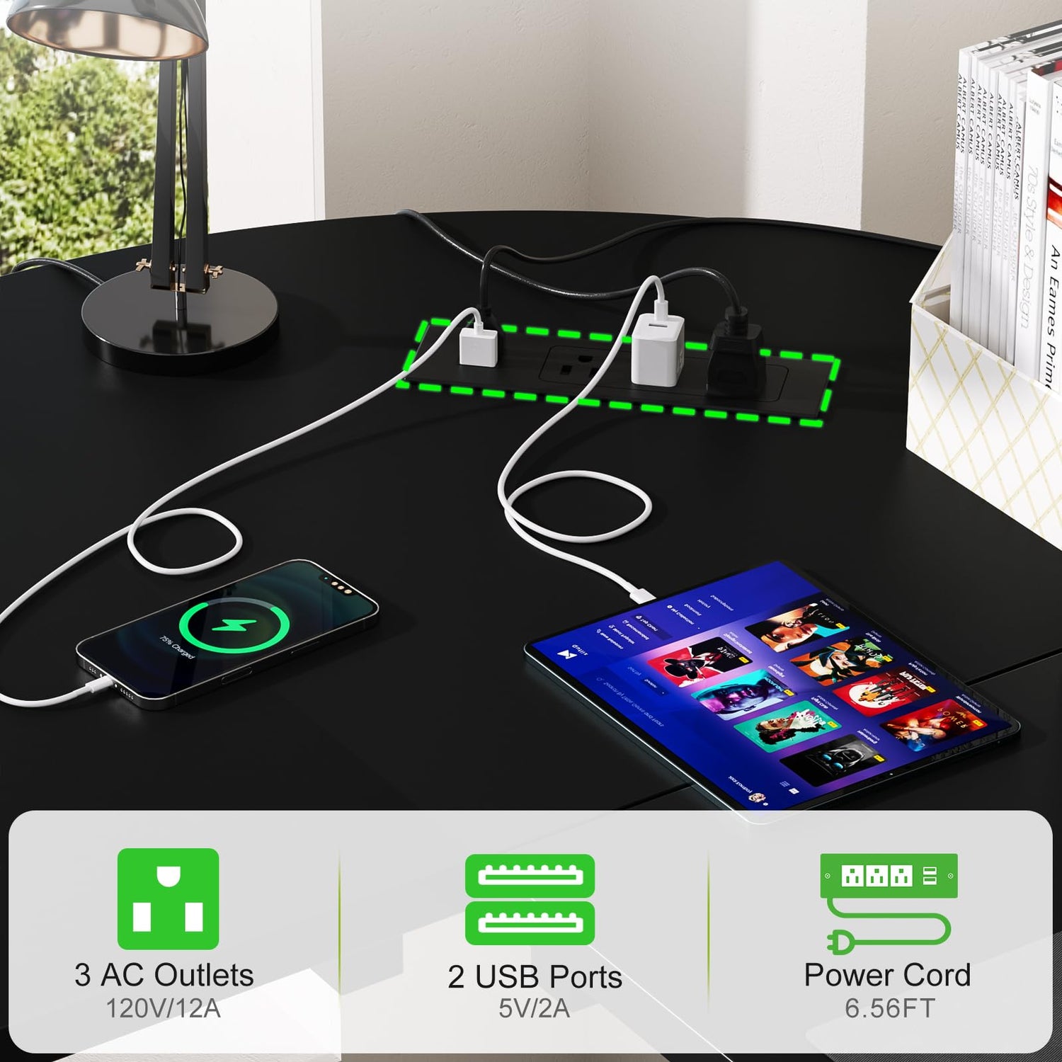 - **L Shaped Desk with Power Outlet**: This L-shaped corner desk comes equipped with a built-in power strip featuring three outlets and two USB ports. This convenient setup allows you to charge multiple devices simultaneously without the need for additional power strips, helping you maintain a clutter-free workspace