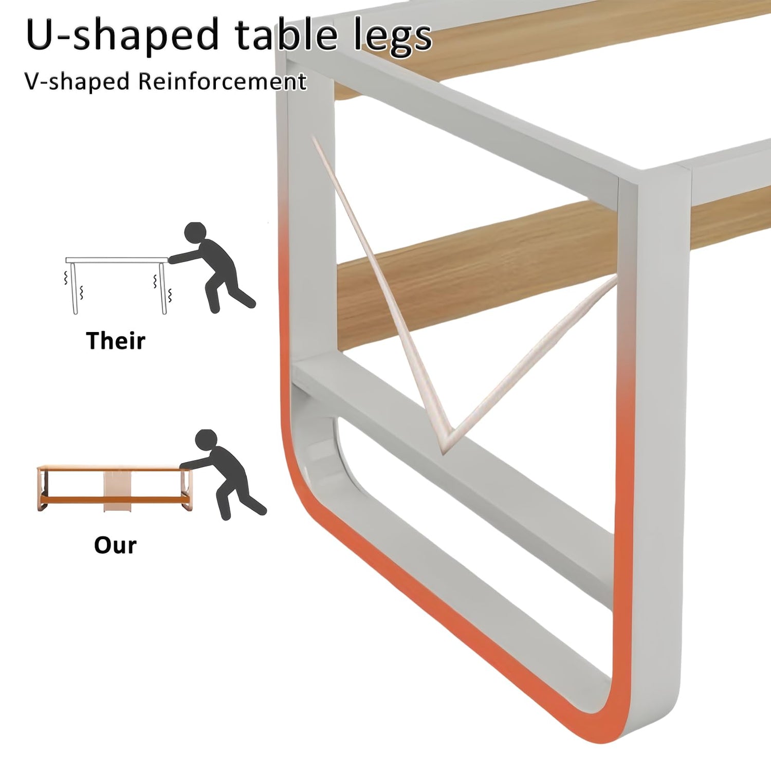 - Reliable Construction: This large computer desk is made of high quality wood planks, the desktop is waterproof and anti-scratch.The thickened metal frame ensures the super stability and thicker board is strong enough to support heavy load; U-shaped construction with V-shaped reinforcement for geometric stability.The adjustable foot pads keep the large office desk stable on uneven floors and protect the floor from scratching.