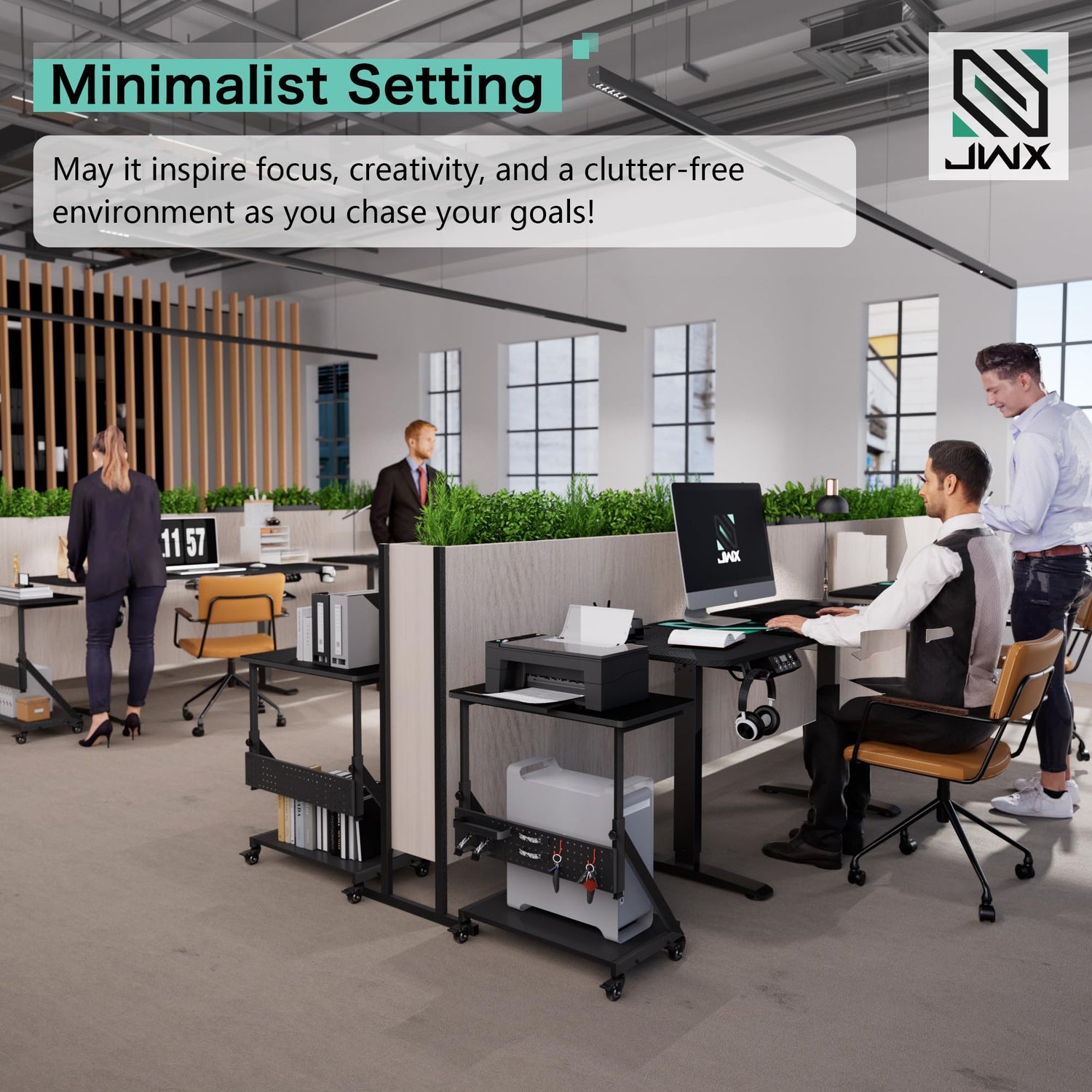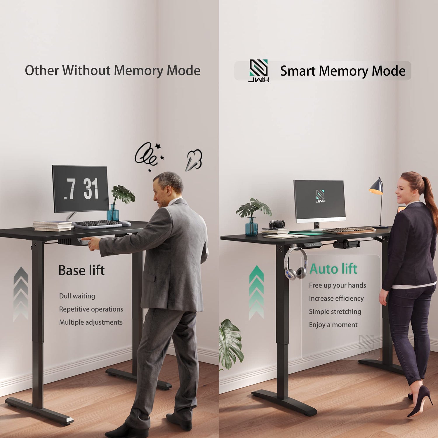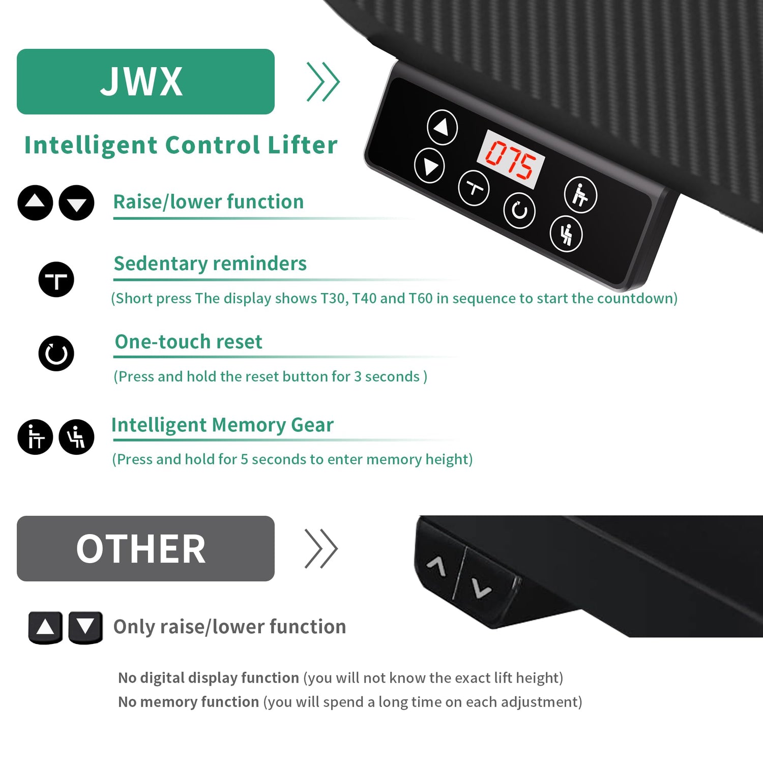 - ② Electric Height Adjustable Lift System: JWX height adjustable electric standing desk comes with 2 memory buttons to customize your desired heights from 28.75" to 46.43”. Memory customized function brings convenience to different people who use this motorized desk.