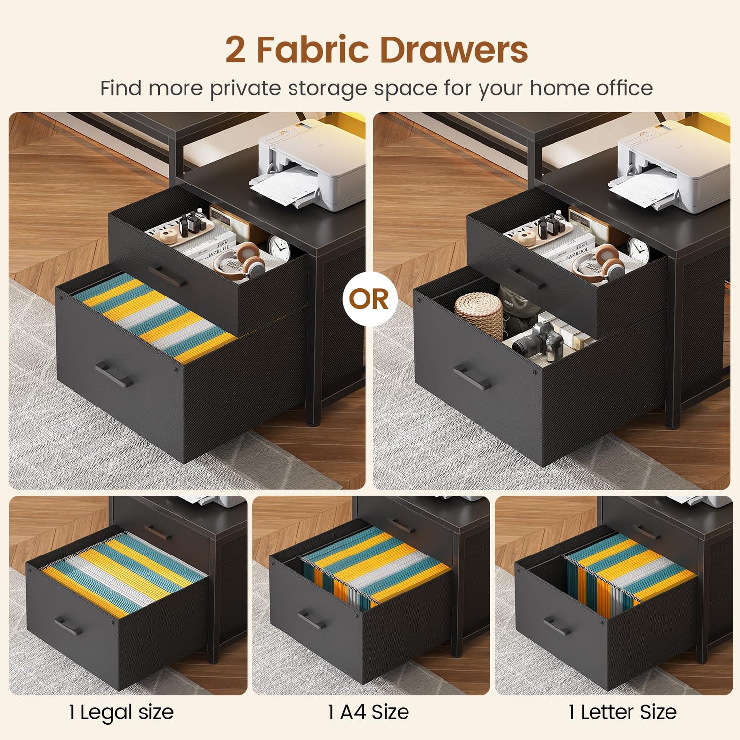 - 【Ample Storage】Computer gaming desk comes with display cabinet, provides ample space to display your decorations, photo albums, game figure, and so on. 2 Drawers are made of breathable high-quality fabric, lightweight and easy to install while providing sufficient storage space.