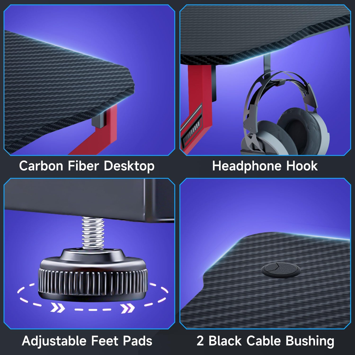 TIQLAB Small Gaming Desk with LED Lights, 40 Inch Computer Desk for Home Small Space, Gaming Table with Carbon Fiber Surface, PC Gamer Desk for Kids Boys Men, Black
