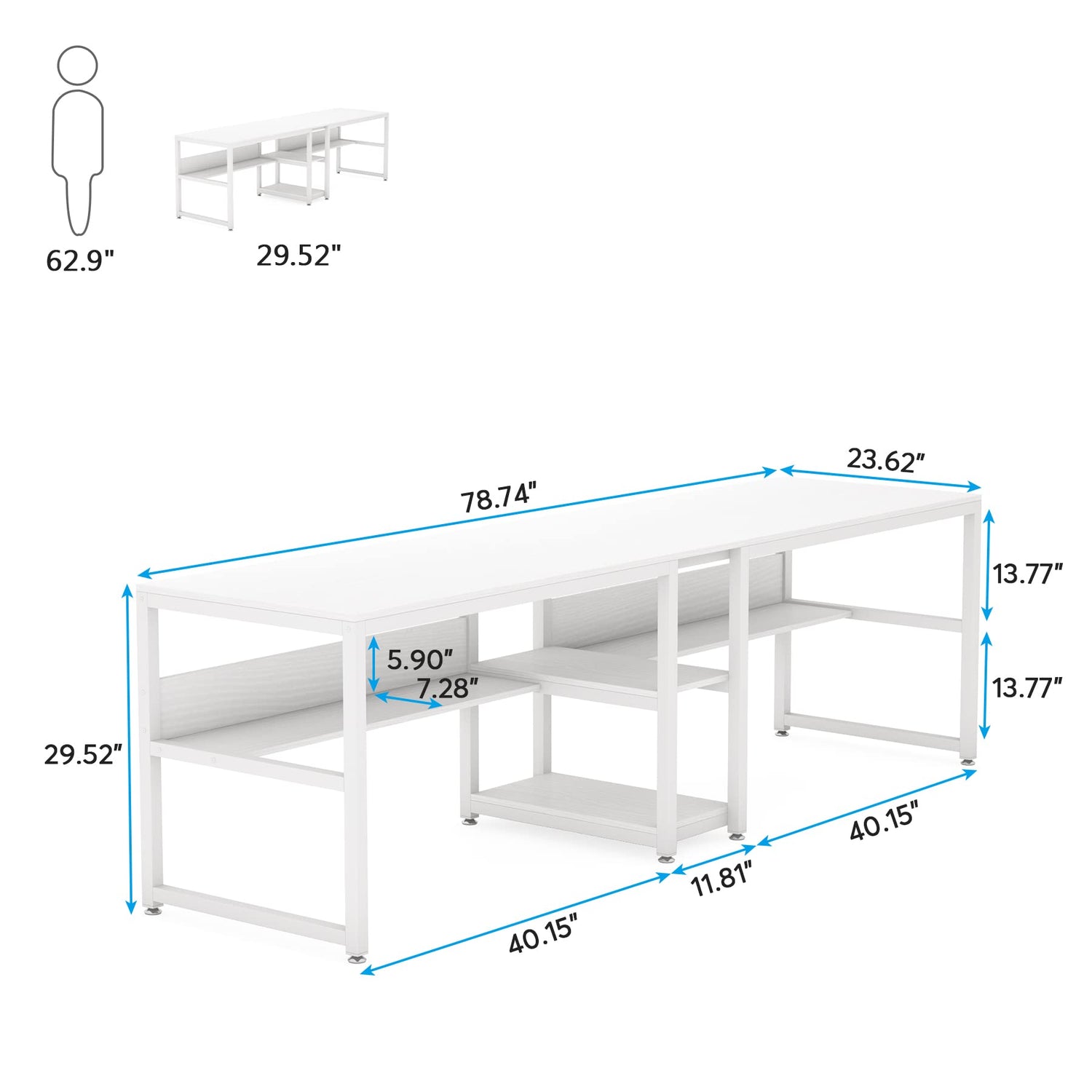 Tribesigns 78-Inch Rustic Double Desk with Bookshelf for Two-Person Workstation in White