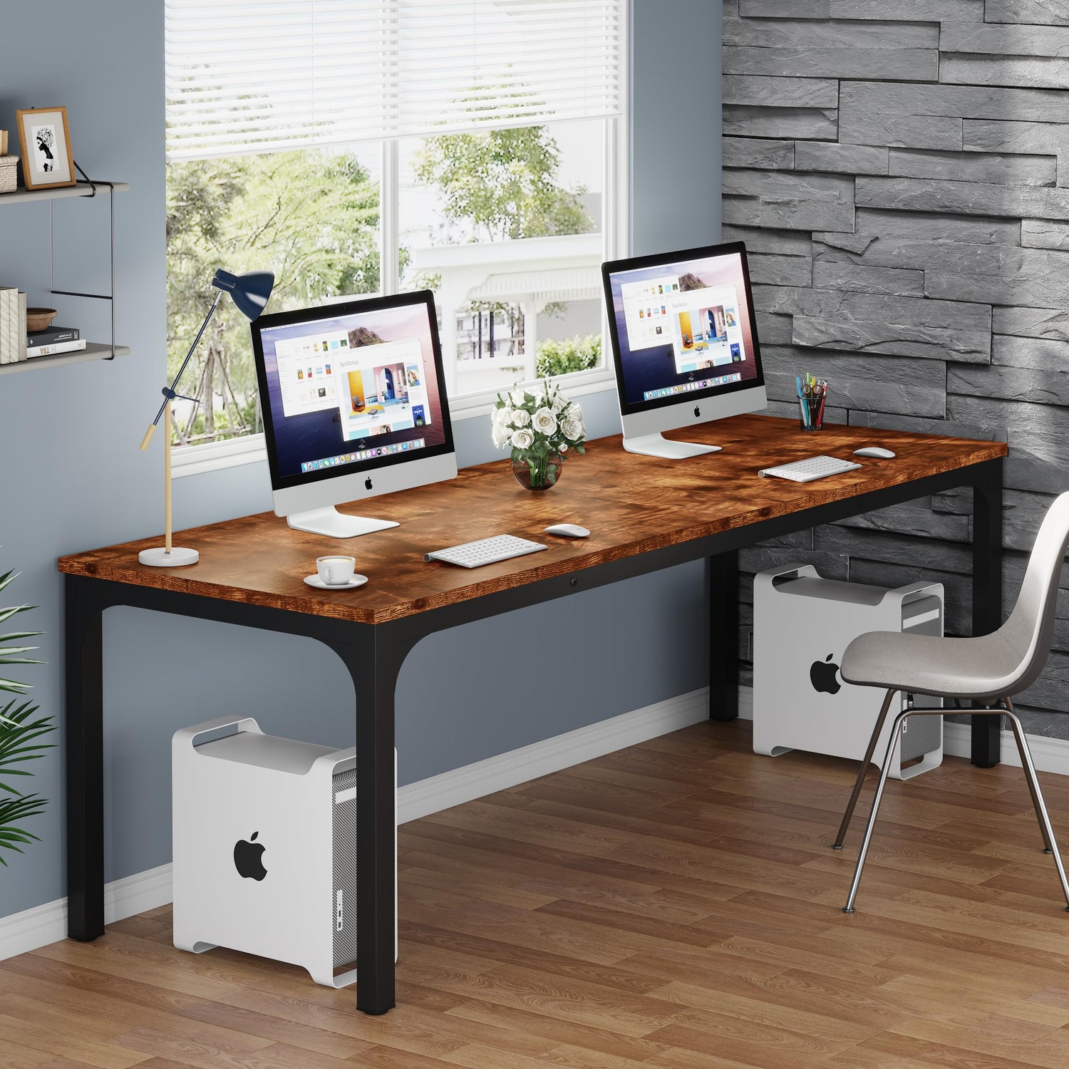Vagaconl Computer Desk, Long Office Desk 2 Person Home Office Work Desks 78.74" L x 27.55" W x 29.52" H, Large Writing Table Study Desk, Rustic Brown (Only Table)