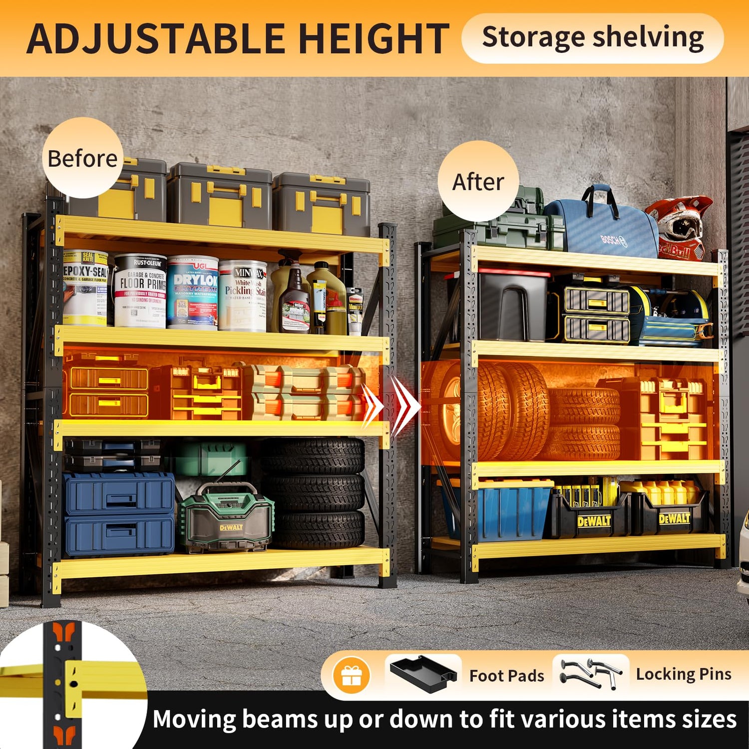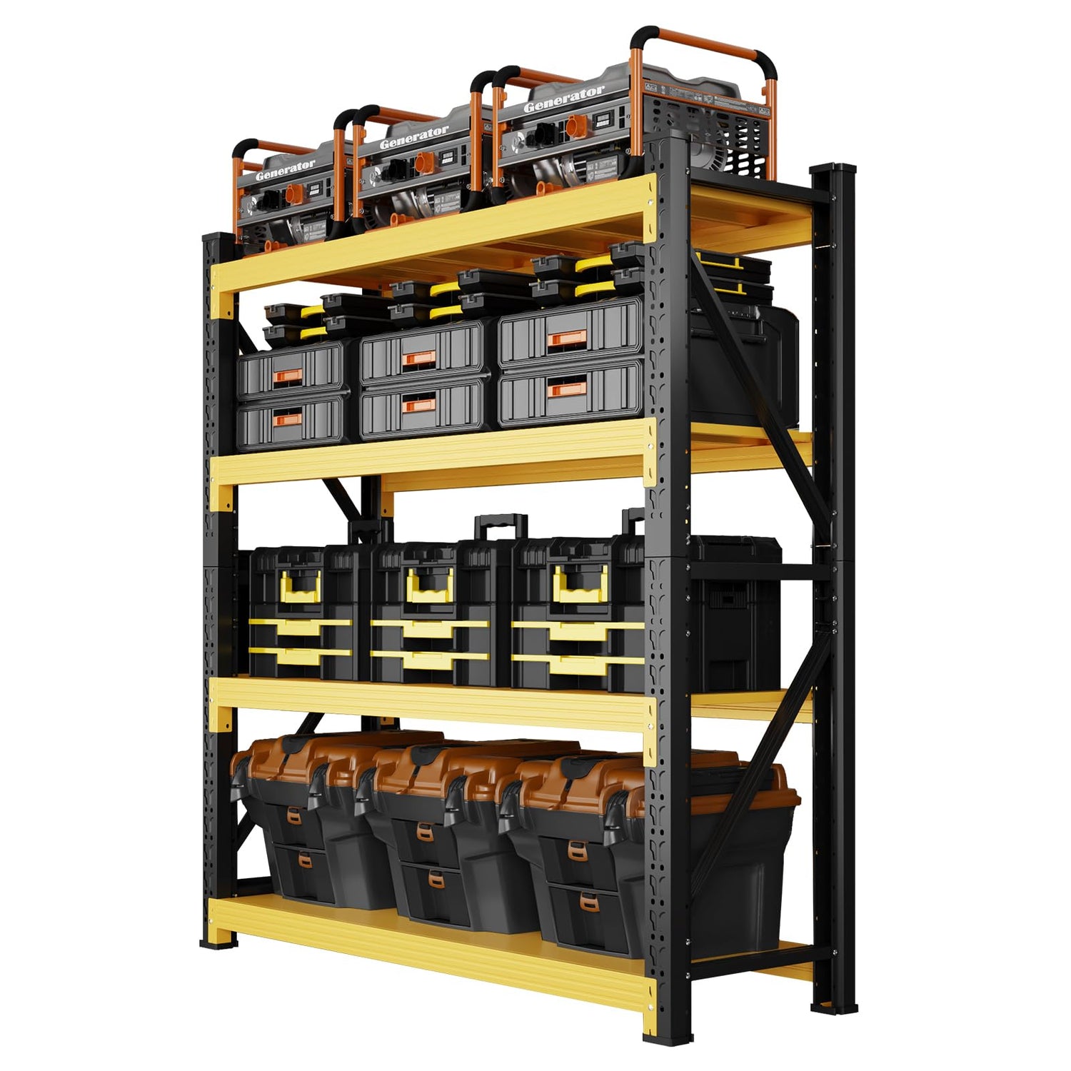 3000LBS Heavy Duty Shelving Units, 4 Tier Adjustable Metal Utility Shelf, 78.7"H Garage Storage Shelves Organization Rack for Industrial, Warehouse, Basement (Yellow & Black, 19.7"D×41.3"W×78.7"H)