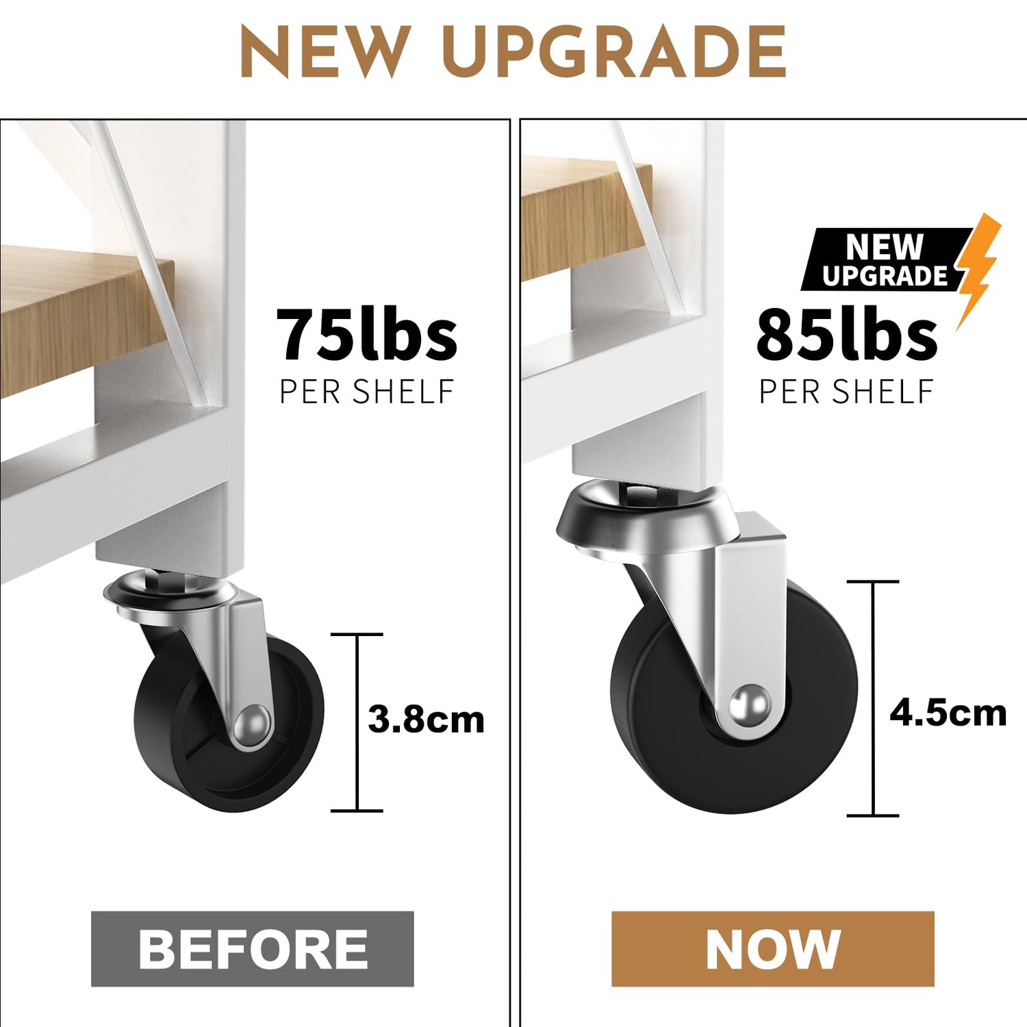 - 【Excellent load-bearing capacity】Made of durable metal, rust-proof and corrosion-resistant, stable,Holds up to 400 pounds without wheels (100 lbs/shelf), and 225 with wheels (75 lbs/shelf).