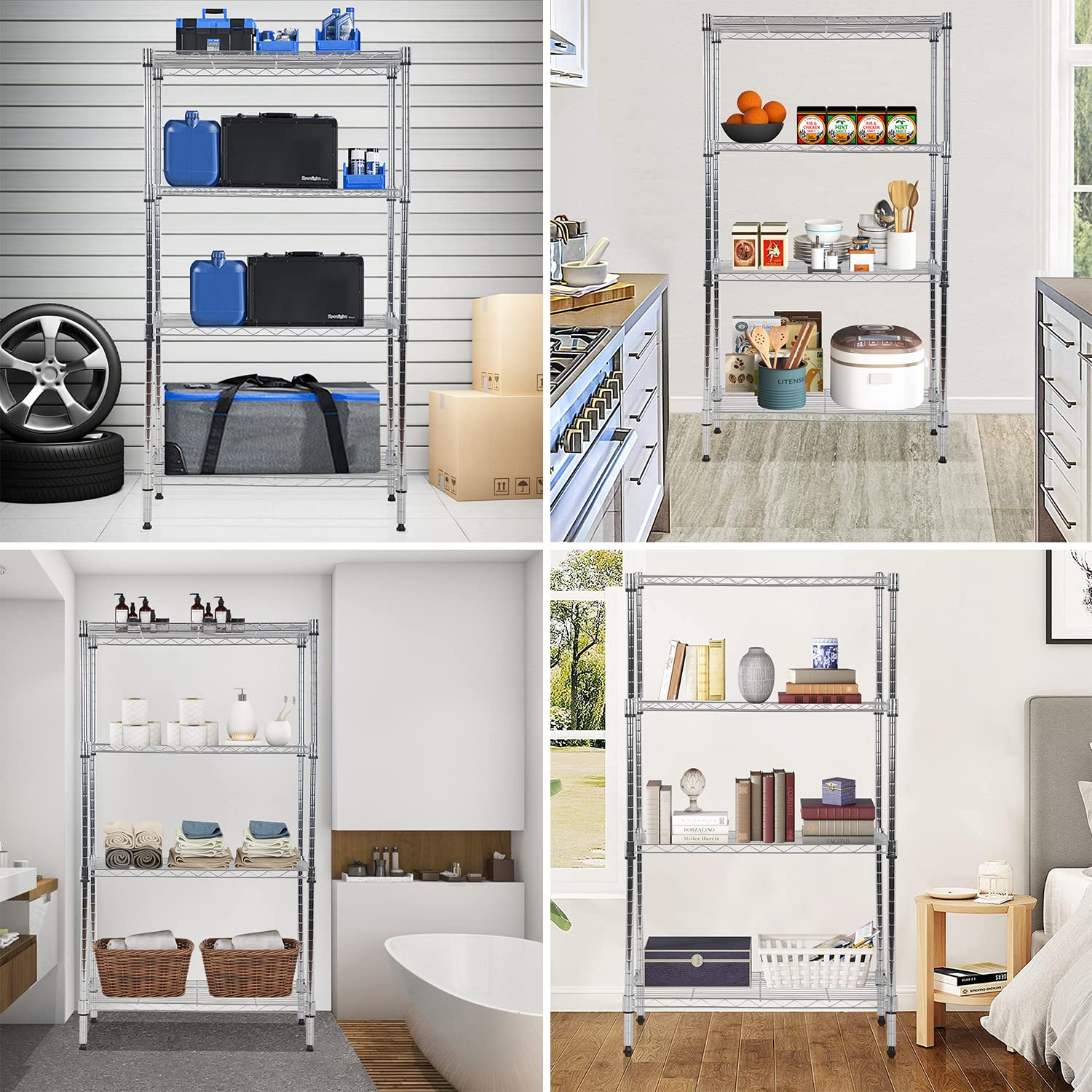 4 Tier Metal Storage Shelves 36" L x 14" W x 54"H Adjustable Wire Shelving Unit 1000LBS Metal Shelves Garage Storage Pantry Shelves Storage Rack Wire Rack Shelf Steel Shelves for Storage, Chrome