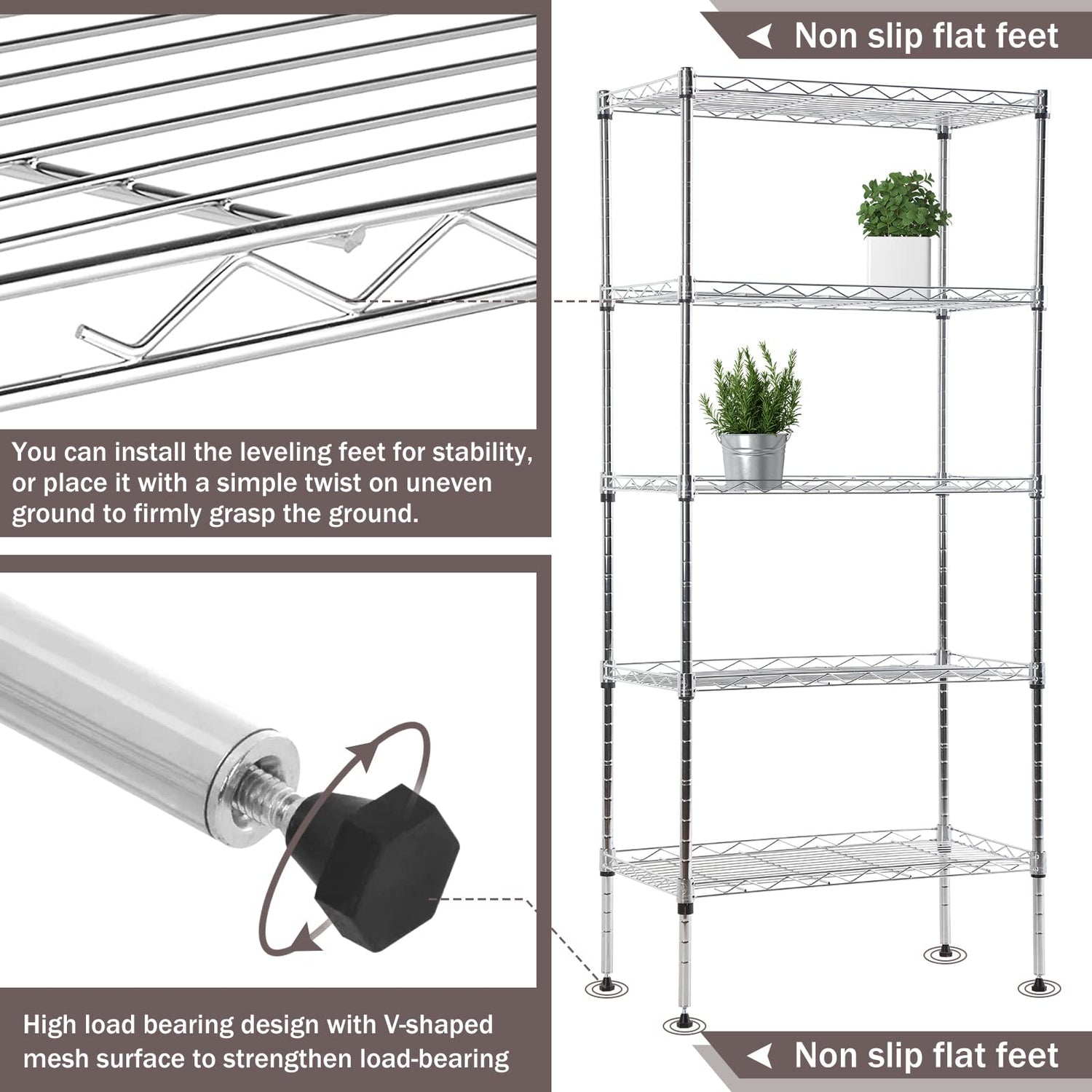 5 Tier Metal Storage Shelves 36" L x 14" W x 72" H Adjustable Wire Shelving Unit 1250LBS Metal Shelves Garage Storage Pantry Shelves Storage Rack