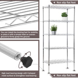 • Anti-Slip Leveling Feet: Our shelving includes 4 adjustable leveling feet. You can install the leveling feet for stability, or place them on uneven ground for a simple twist to get a firm grip on the ground.