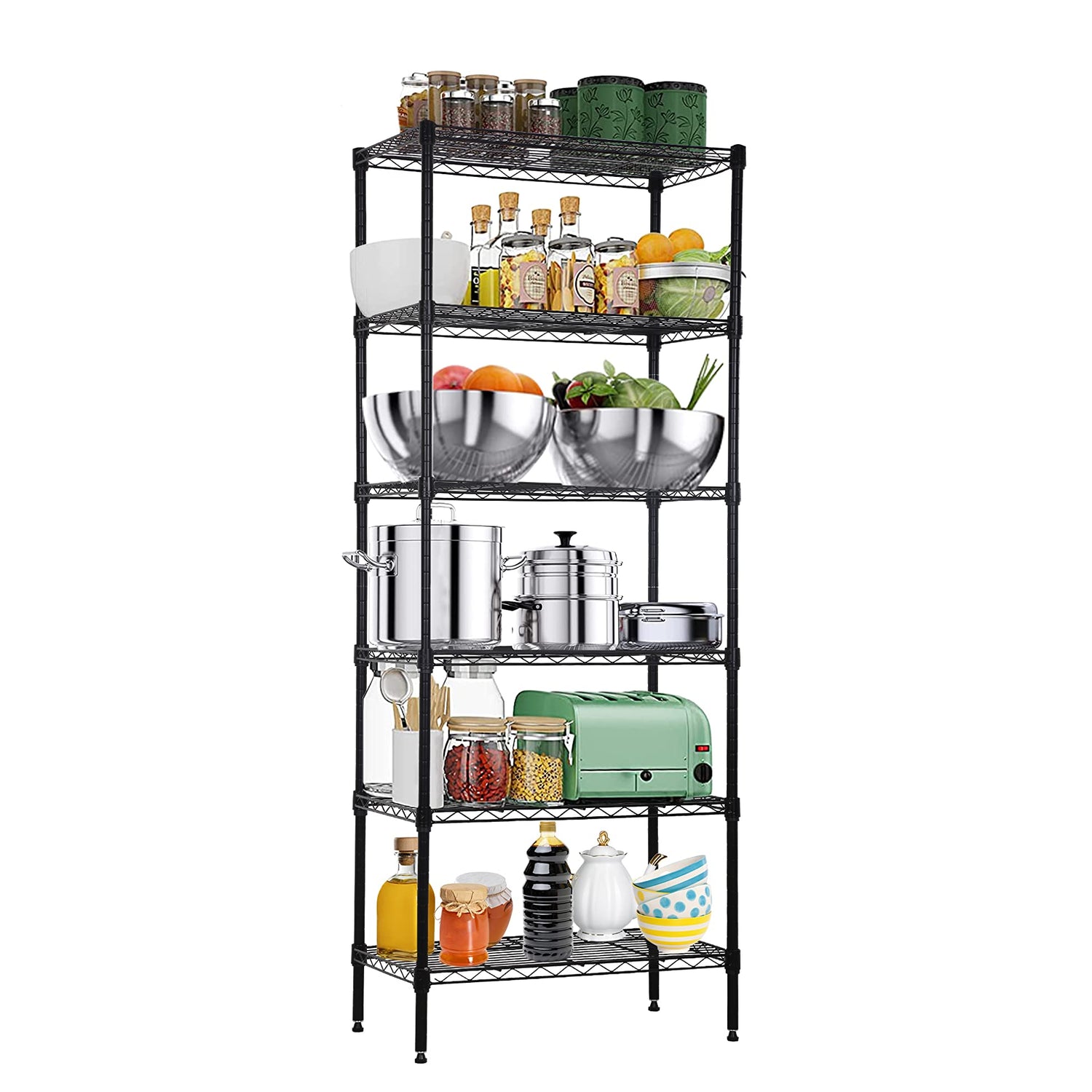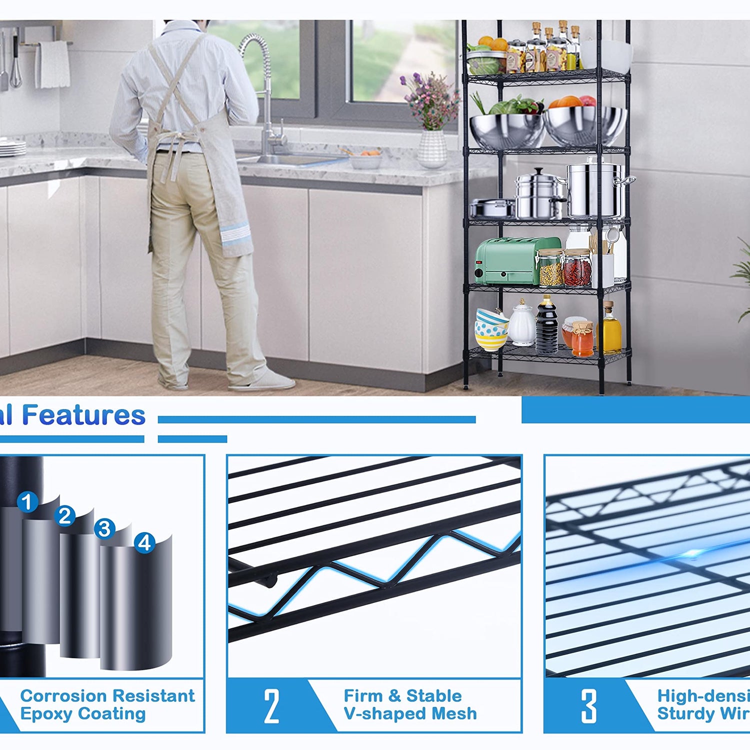 - 【High Quality & Safe Storage Shelves】NSF certified. Made of premium carbon steel, can resist dirt buildup and corrosion.This wire shelving is durable, sturdy, stable and will not wobble after putting stuff on it. The ideal storage shelving rack can meet all your home, office and commercial multipurpose storage needs.