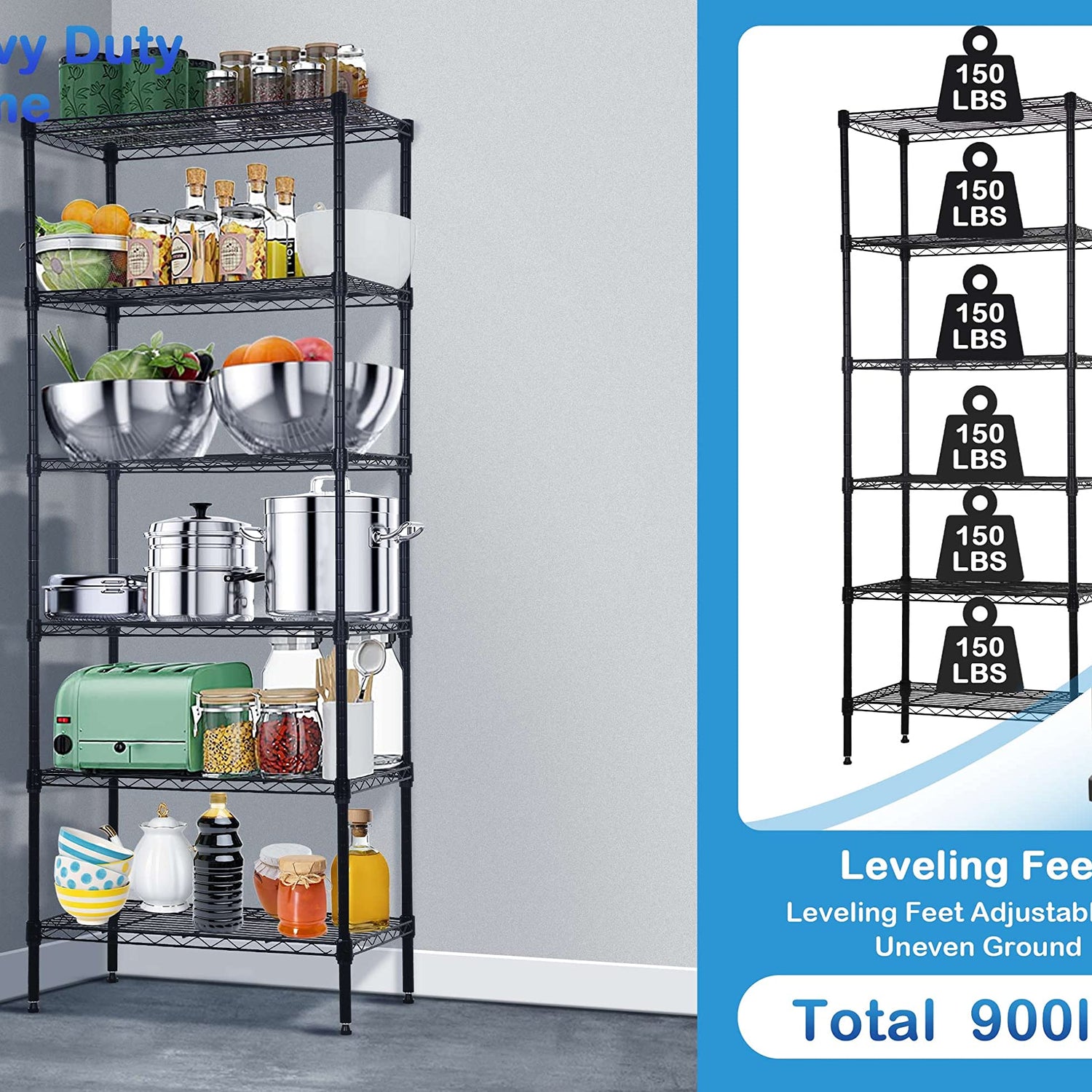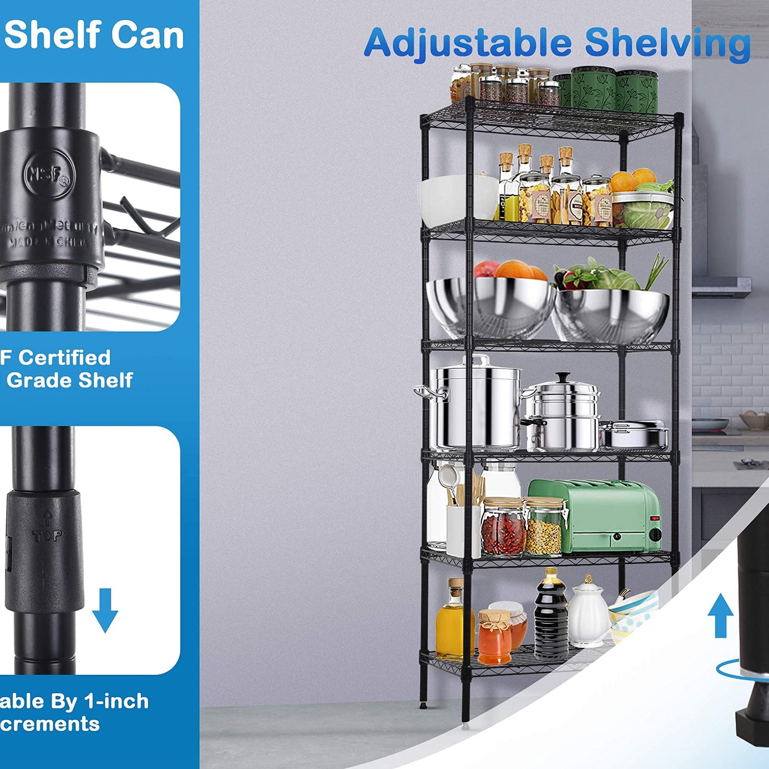 6-Tier Metal Wire Shelving Unit Snack Shelf Height Adjustable Storage Rack NSF Certified Storage Shelves 900 Lbs Capacity Standing Utility Shelf for Laundry Kitchen Pantry Garage Organization