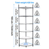 6 Tier NSF Metal Corner Shelf Wire Shelving Unit, 420lbs Capacity Heavy Duty Adjustable Storage Rack with Shelf Liners for Closet Kitchen Bathroom Garage Basement, 72" H x 18" L x 18" D - Black