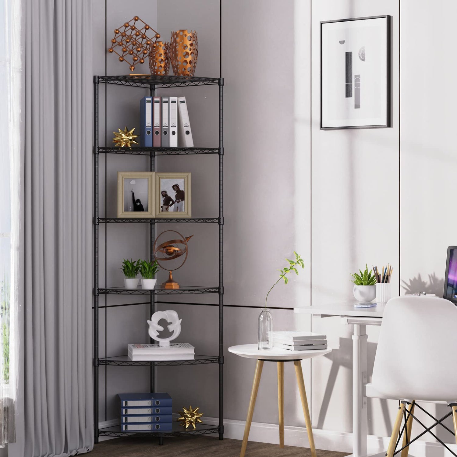 • [SUTABLE FOR INSTALLATION IN THE CORNER] - Our 6-story triangular storage rack is very suitable for placing in the corner, especially for places where space is limited and requires large storage space. Simple modern design is well coordinated with any family and store decoration style. For example, bathroom, door, entrance, garage, kitchen, kitchen, laundry room, office or closet.