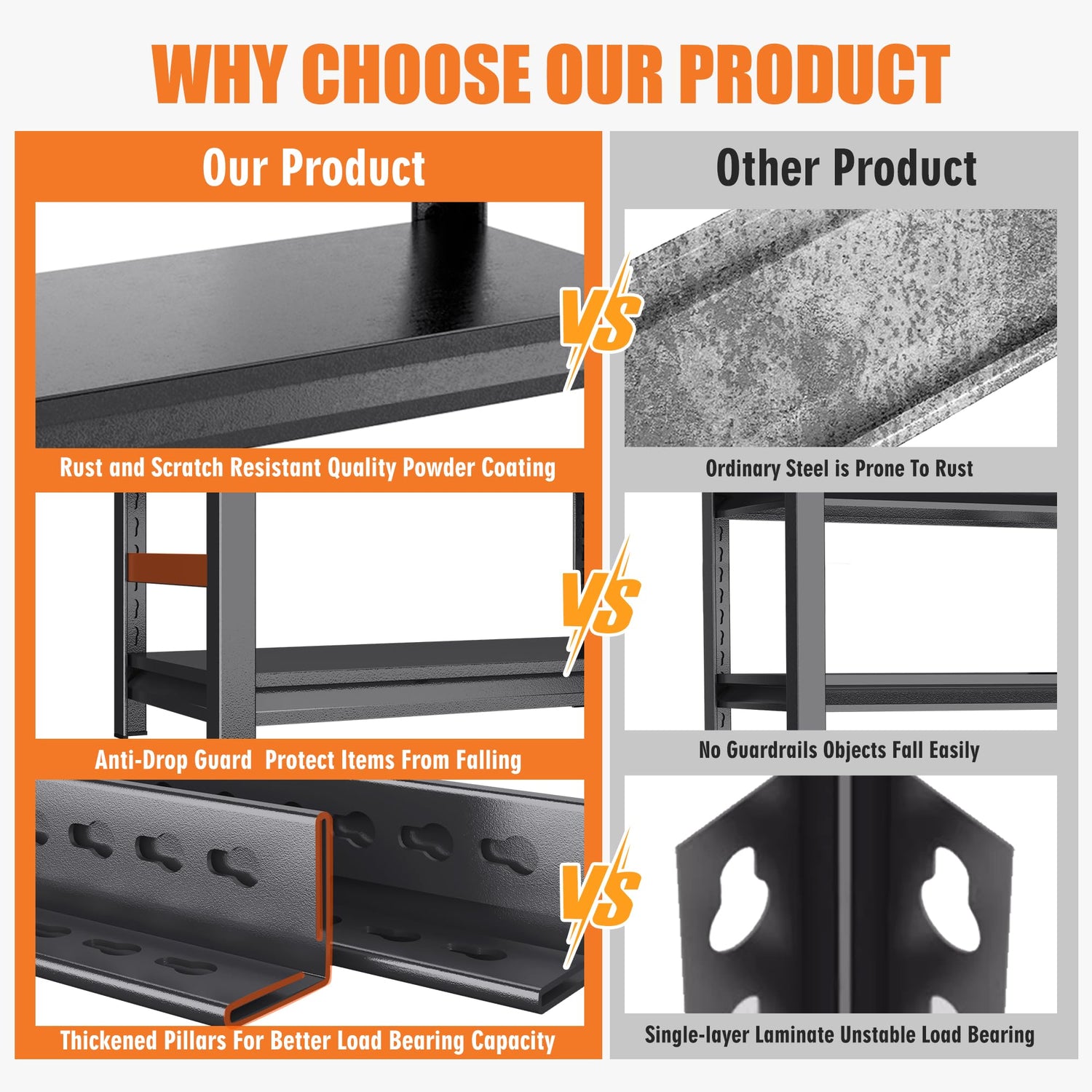 - [Rust-proof & Easy to Clean]:We use special rust-proof treatment, this shelf will not show rust stains even if it is used in a humid basement for up to 10 years, and the special powder coating technology also allows you to experience the easy cleaning effect.
