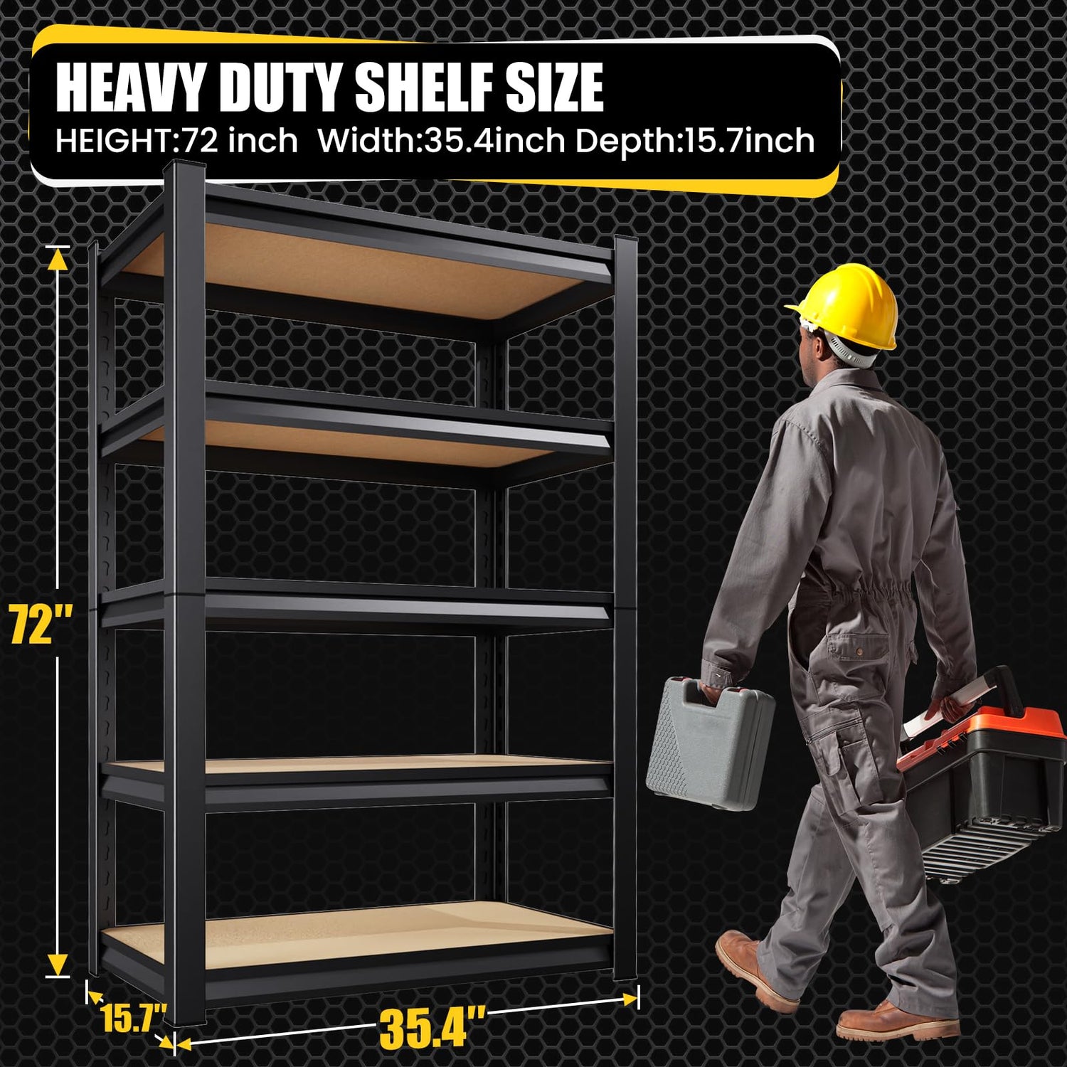 72”H*36”W Garage Shelving Heavy Duty, Adjustable Garage Shelves, 2000LBS Storage Shelves, 5-Tier Metal Shelving Units, Easy Assembly Wood Shelves, Utility Storage Rack Shelf for Warehouse,Black
