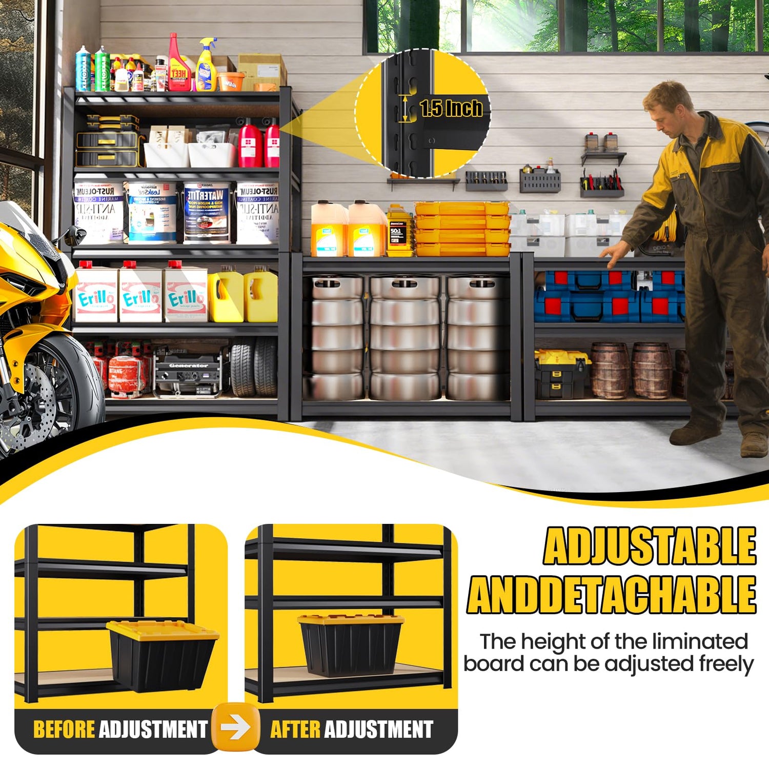 • 【Space Utilization Master】This 5-tier garage shelving supports freely adjustable shelf heights, with precise adjustment holes every 1.5 inches to accommodate storage of items of various sizes. Whether it's small parts boxes, medium-sized storage boxes, or large tires and toolboxes, you can organize them in layers according to your needs, fully unleashing the potential of spaces such as garages and warehouses, and transforming cluttered items into tidy order in an instant.