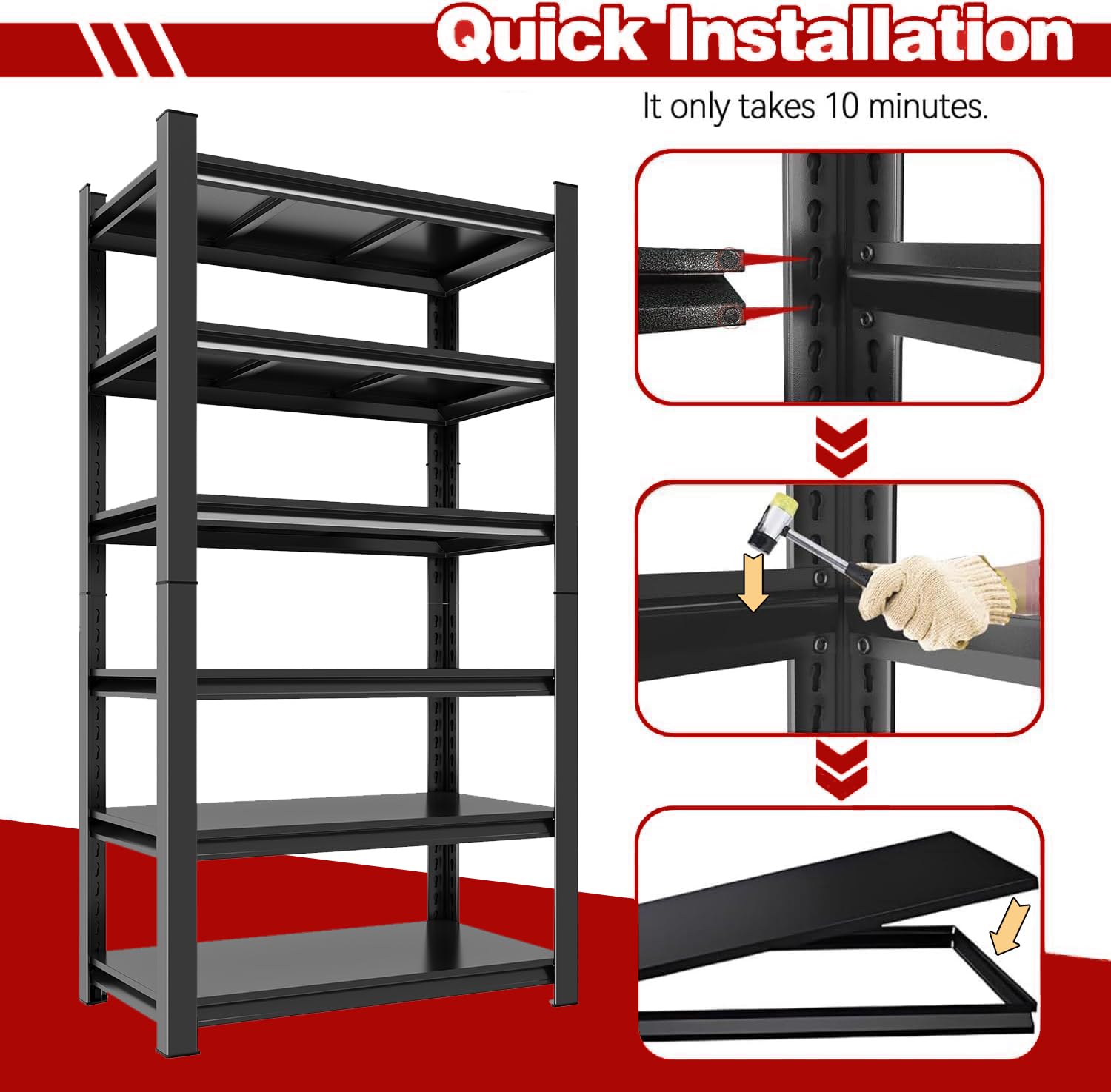 - 【Tool-Free Assembly in 10 Minutes】Designed for simple setup, our storage rack uses interlocking mechanisms—no bolts, nuts, or tools required. Even beginners can assemble this garage shelving unit in just 10 minutes, saving time for arranging your garage shelves and other storage essentials