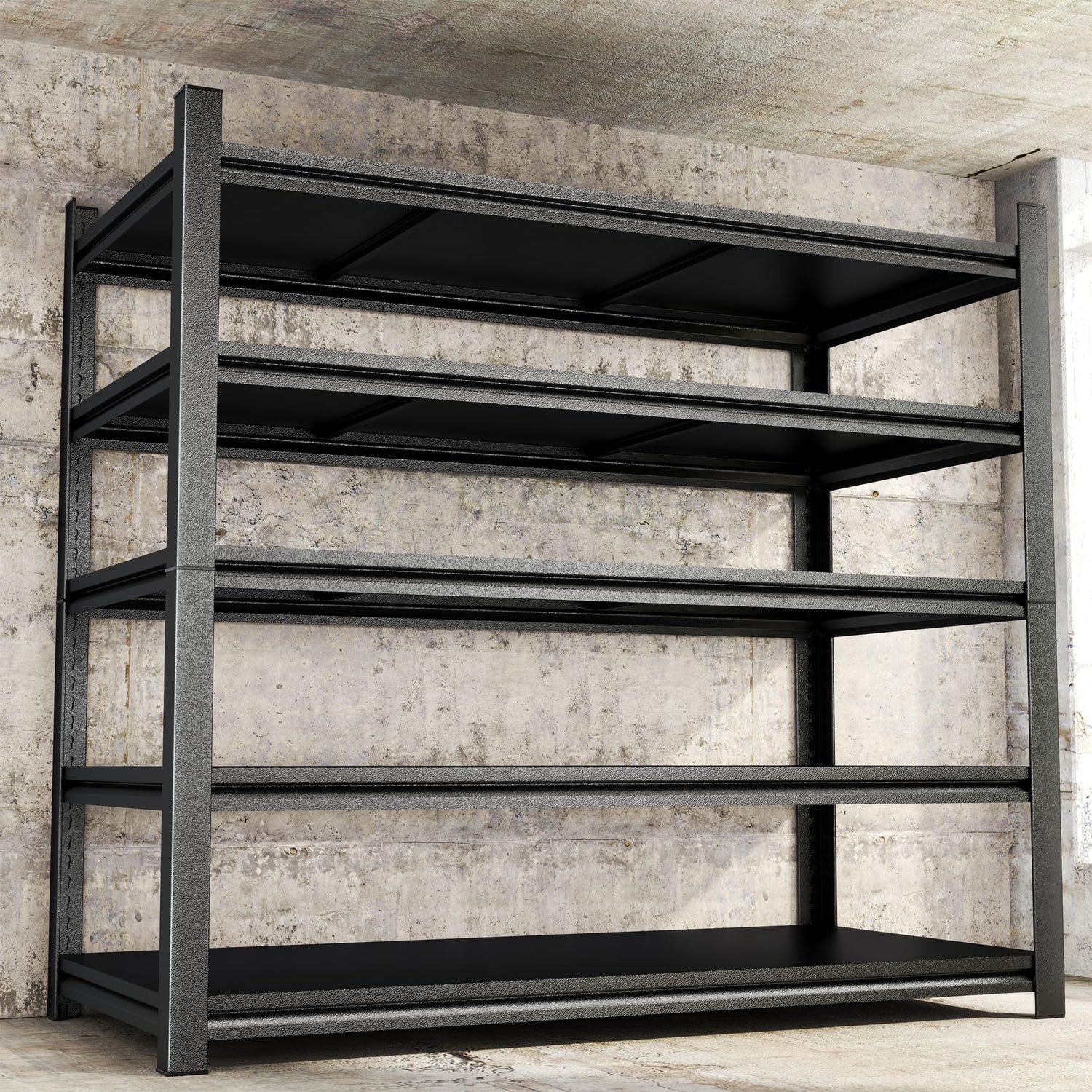 78''H Metal Garage Shelving Unit, Heavy Duty 5-Tier Adjustable Storage Rack, Steel Shelving, 3020 lbs Capacity, Industrial Shelves for Heavy Tools and Equipment, Ideal for Garage, Basement, Black