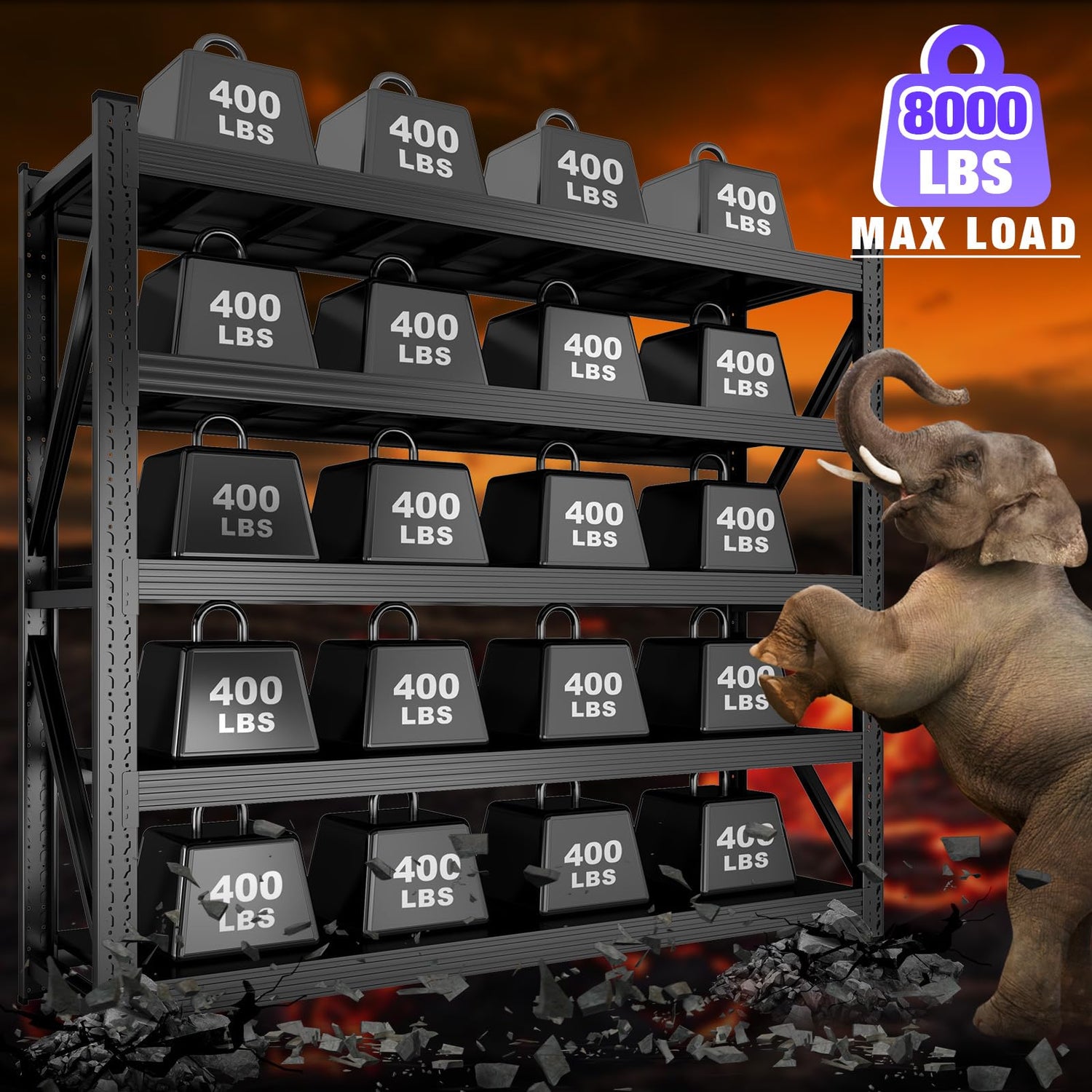 8000LBS Garage Shelving Heavy Duty, 5-Tier 71" H Storage Garage Shelves, Industrial Adjustable Metal Shelving Units for Garages, Warehouses, Kitchen, Black, 59" W x 24" D x 71" H