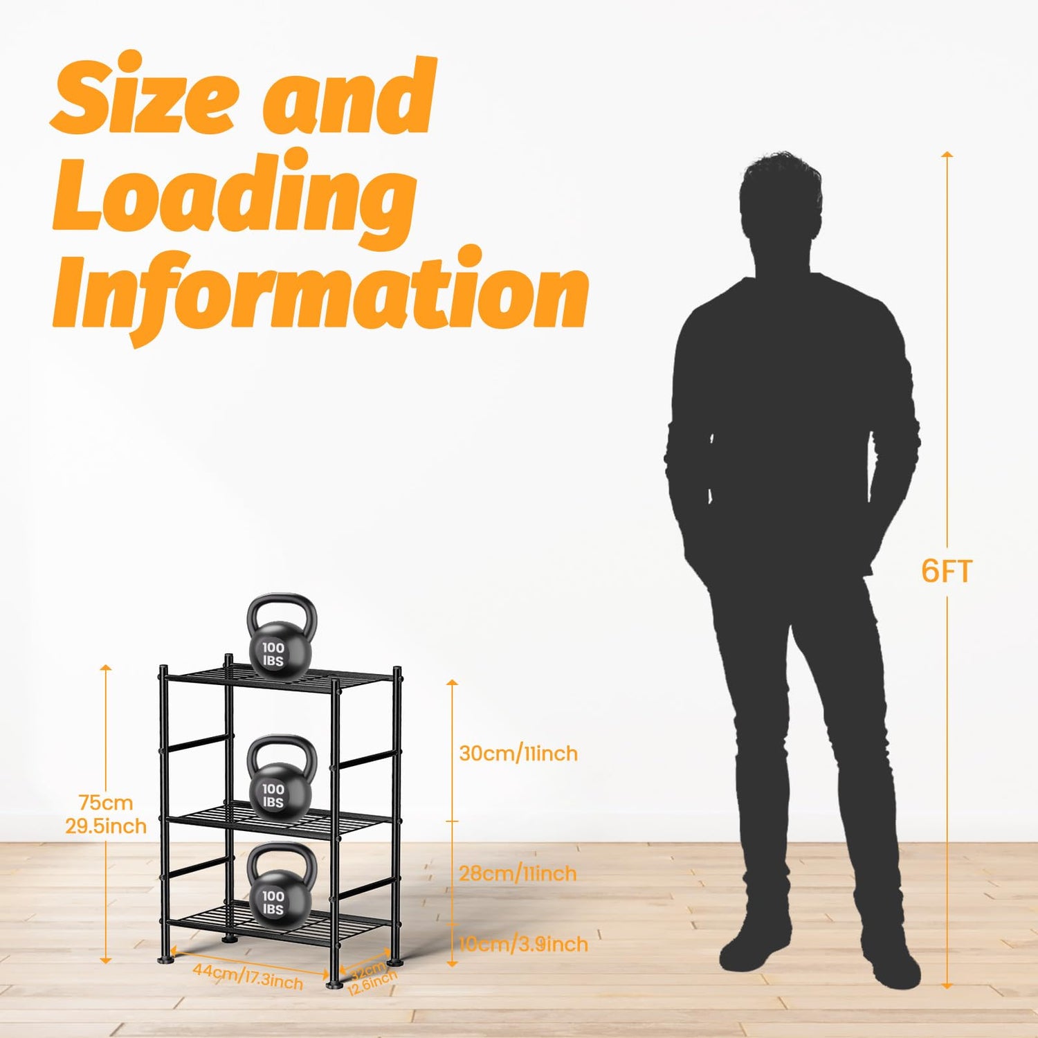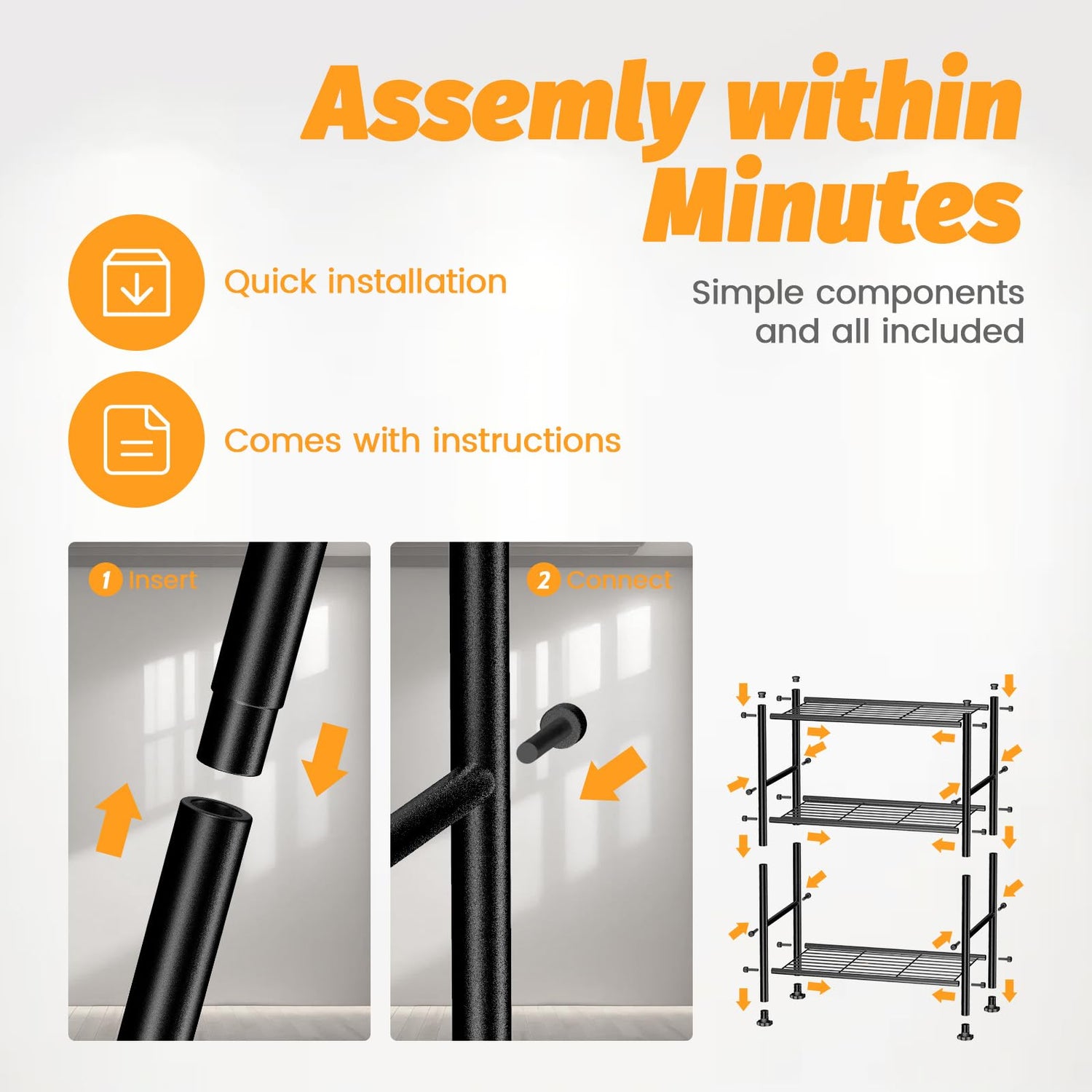 Details: Storage Shelves, 3-Tier Metal Shelving, Wire Shelving with Adjustable Leveling Feet, Shelf Organizer for Bathroom, Closet, Garage