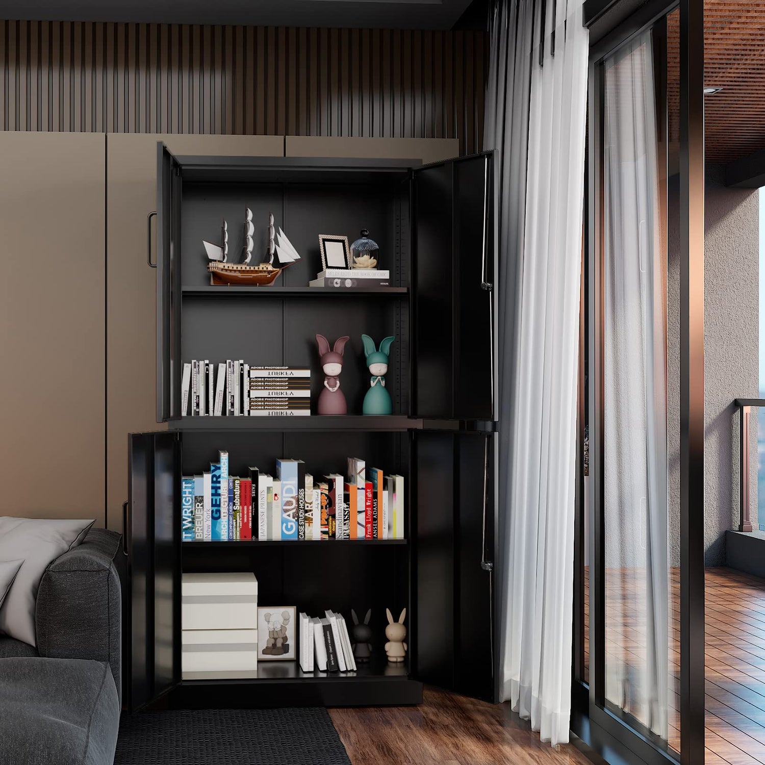 - 【LARGE CAPACITY& MAGNETIC DOOR DESIGN】▶ With a heavy-duty metal frame, each shelf in this tall cabinet can hold up to 150 lbs, and it is very practical. This utility cabinet is suitable for use in either the home or garage as a tool cabinet, garage cabinet, office storage cabinet and so much more!And the upgrading magnet design of each door, which can always keep doors closed while you don't lock the door.