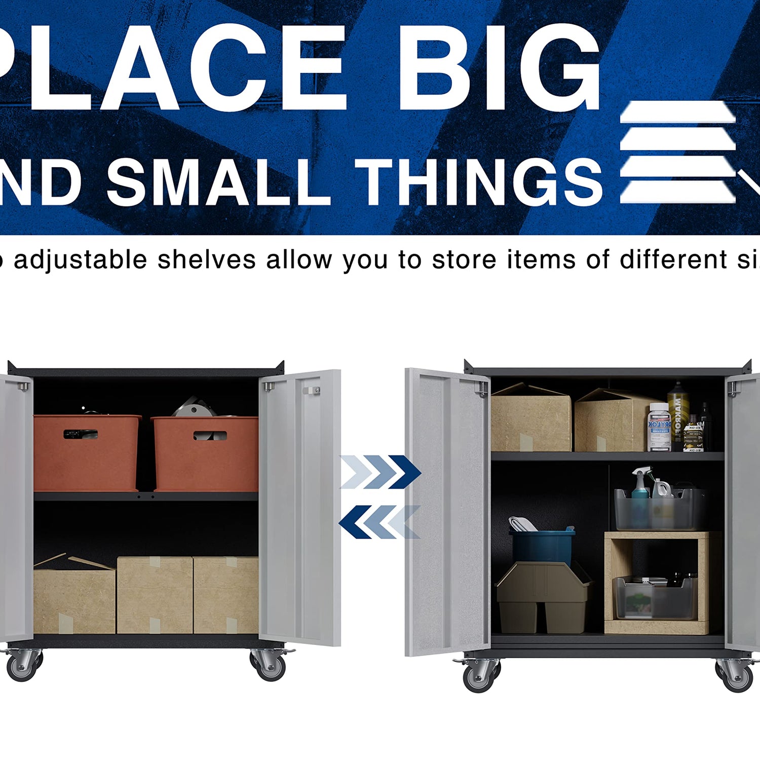 - [Adjustable Shelf] With 1 adjustable or removable shelf inside the rolling tool cabinet to meet your storage needs of different sizes items