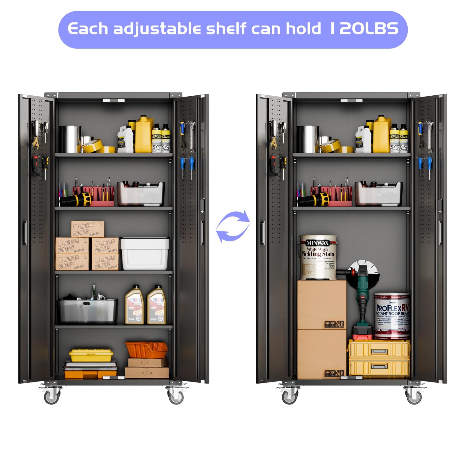 Aobabo Metal Garage Storage Cabinet with Wheels,Heavy Duty Garage Cabinet with Password Lock,Steel Cabinet with 2 Doors and 4 Adjustable Shelves for