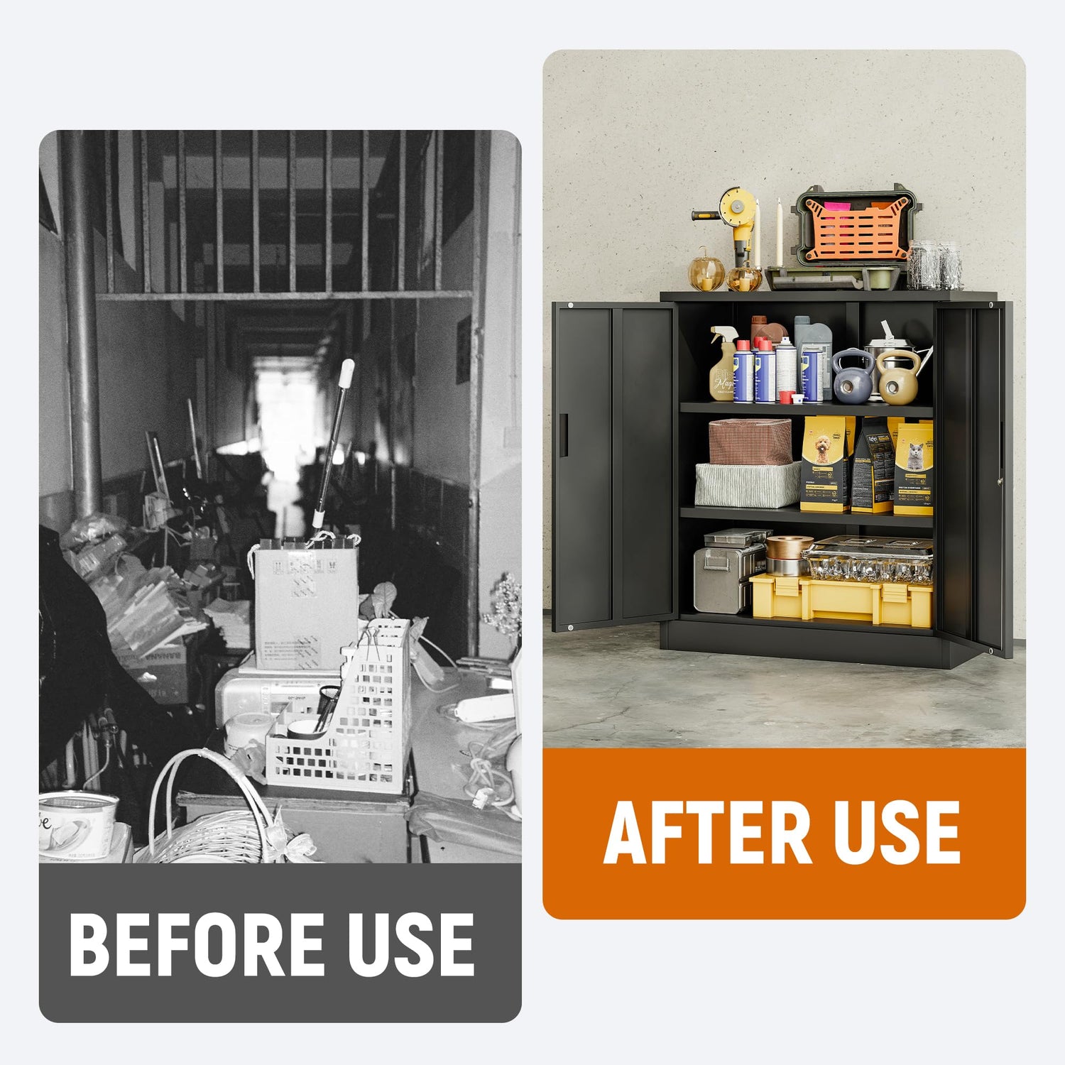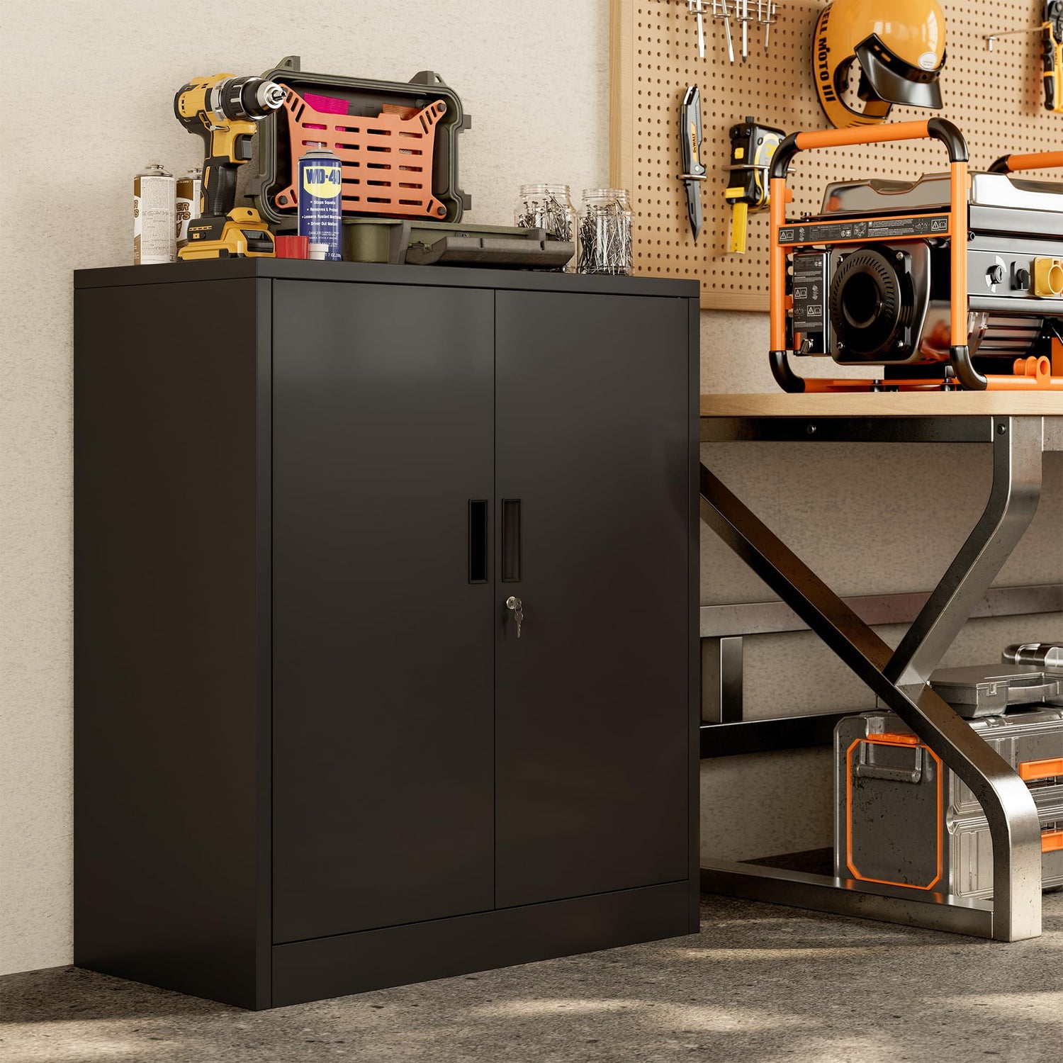 BESFUR Metal Garage Storage Cabinet 36"H, Steel Locking Cabinet with 2 Lockable Doors and 2 Adjustable Shelves easy to assemble for Home Office, Garage,School, Apartment, Warehouse, Utility Room,Black