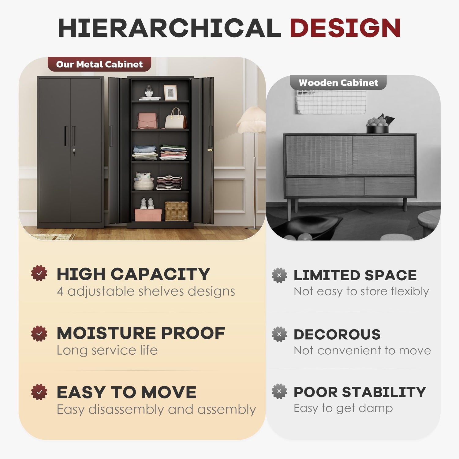- 【180° Wide-Opening Doors + Magnetic Seal】Full Access Design-Doors swing open 180° for easy loading/unloading in this metal office cabinet.Auto-Close Magnetic Doors--Stays shut without locking (quiet, no slamming).Corner Protectors-Prevents wall/floor damage during movement.