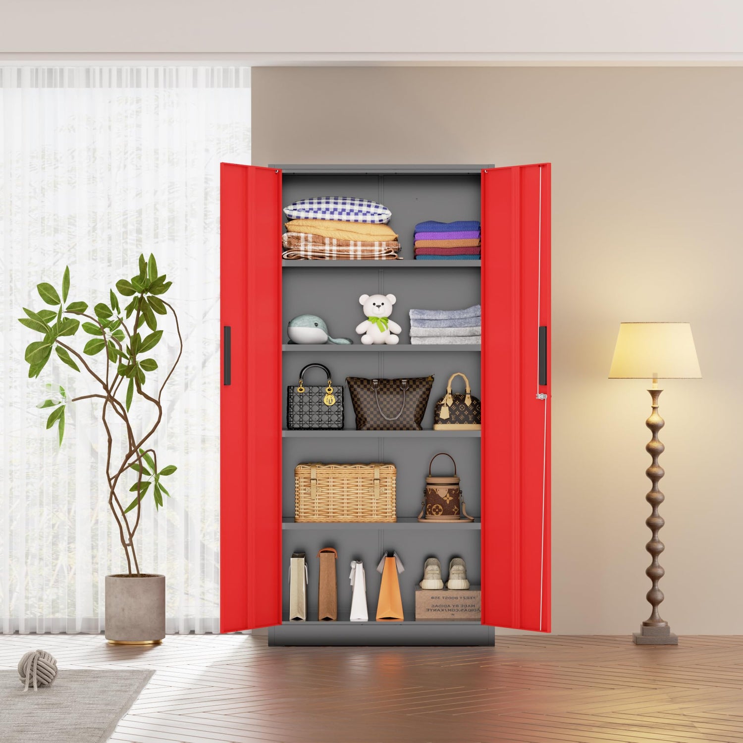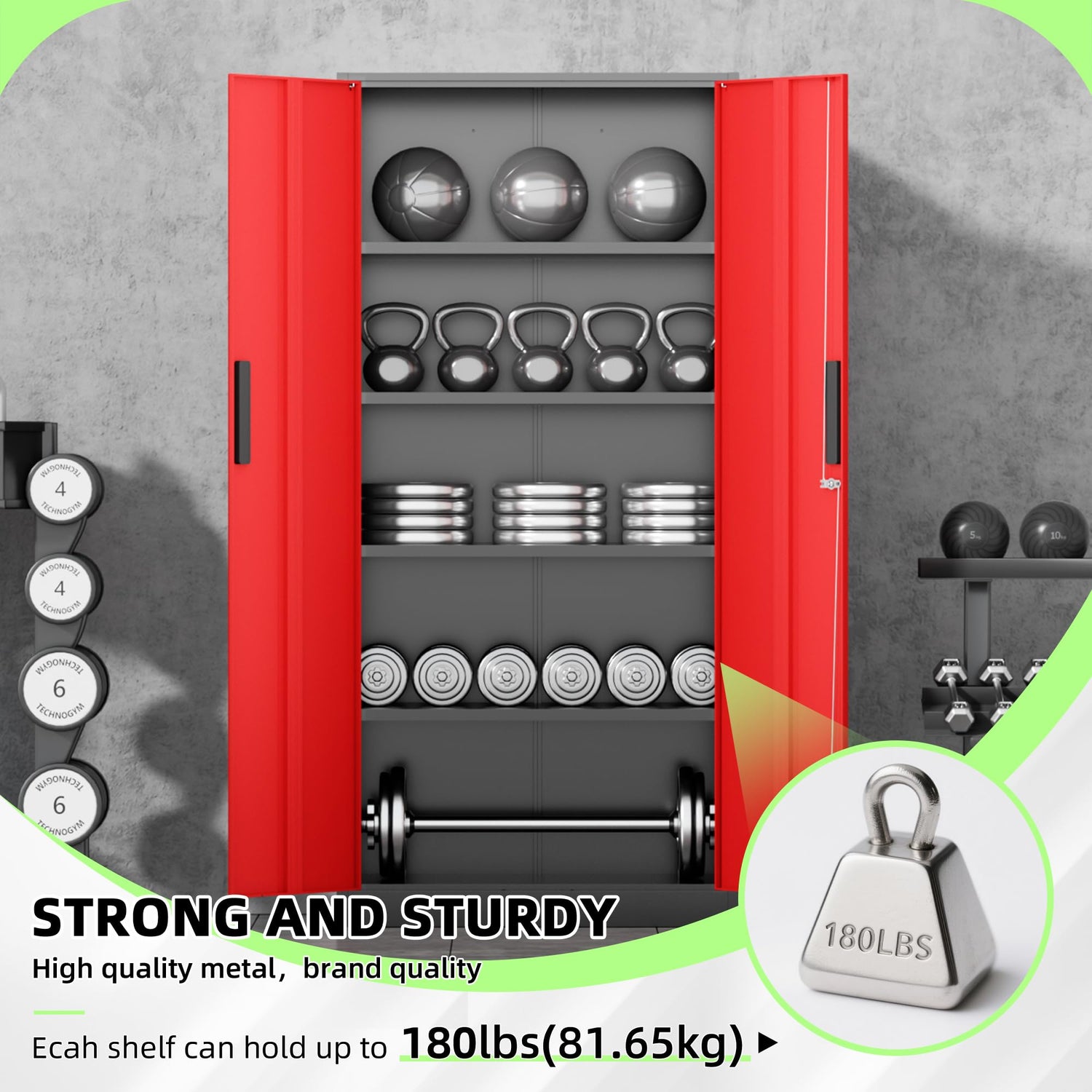 Bonusall 72" Metal Garage Storage Cabinet, 2 Locking Doors & 4 Adjustable Shelves Tall Storage, Heavy Duty Steel Tool Cabinet for Home, Office, Warehouse, School (Black Red)