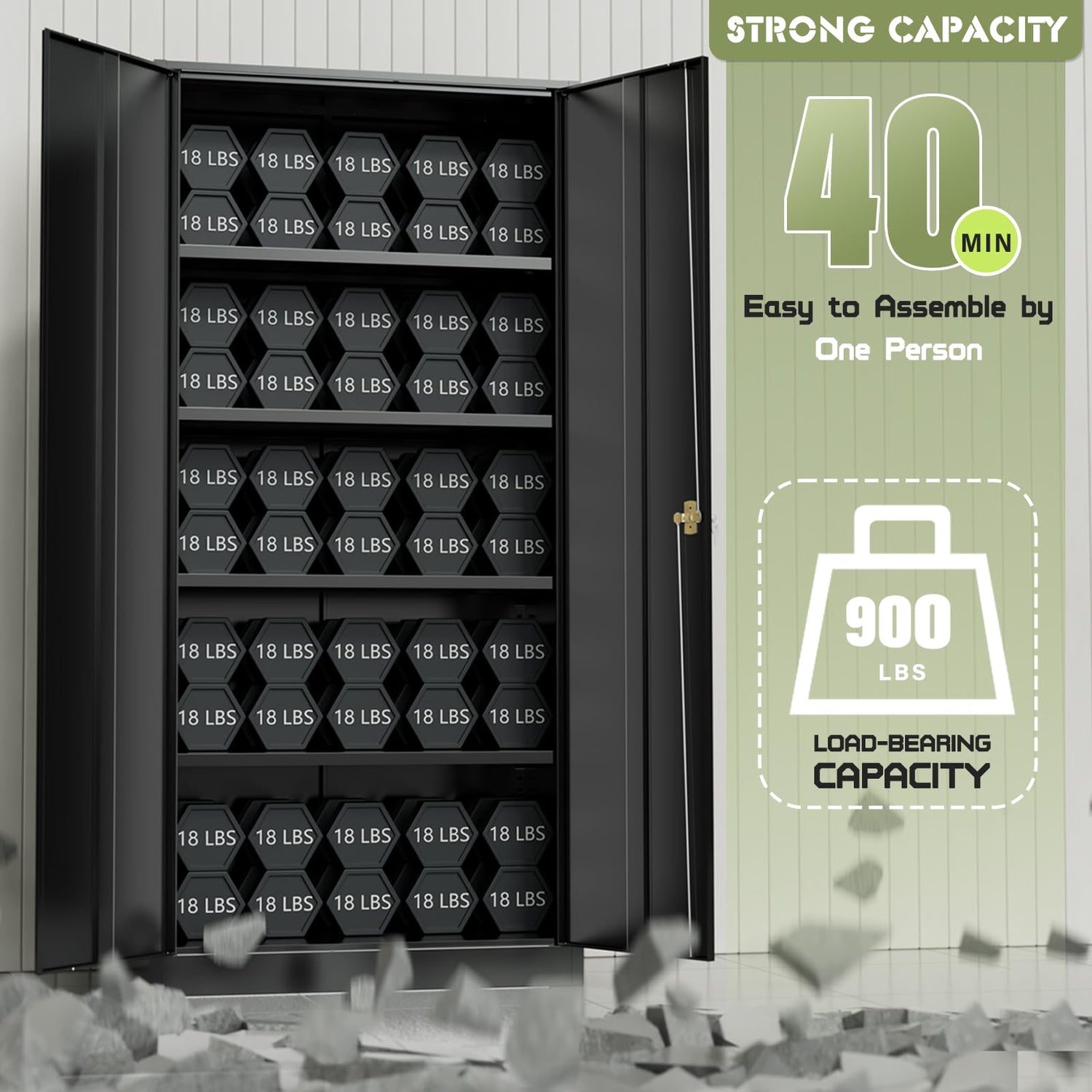 - 【Multiple Uses】Multi-functional locking storage cabinets help to organize items and avoid clutter. The storage cabinet is perfect for storing cans, pet supplies, cleaning supplies, books, heavy-duty tools, clothes and other items.