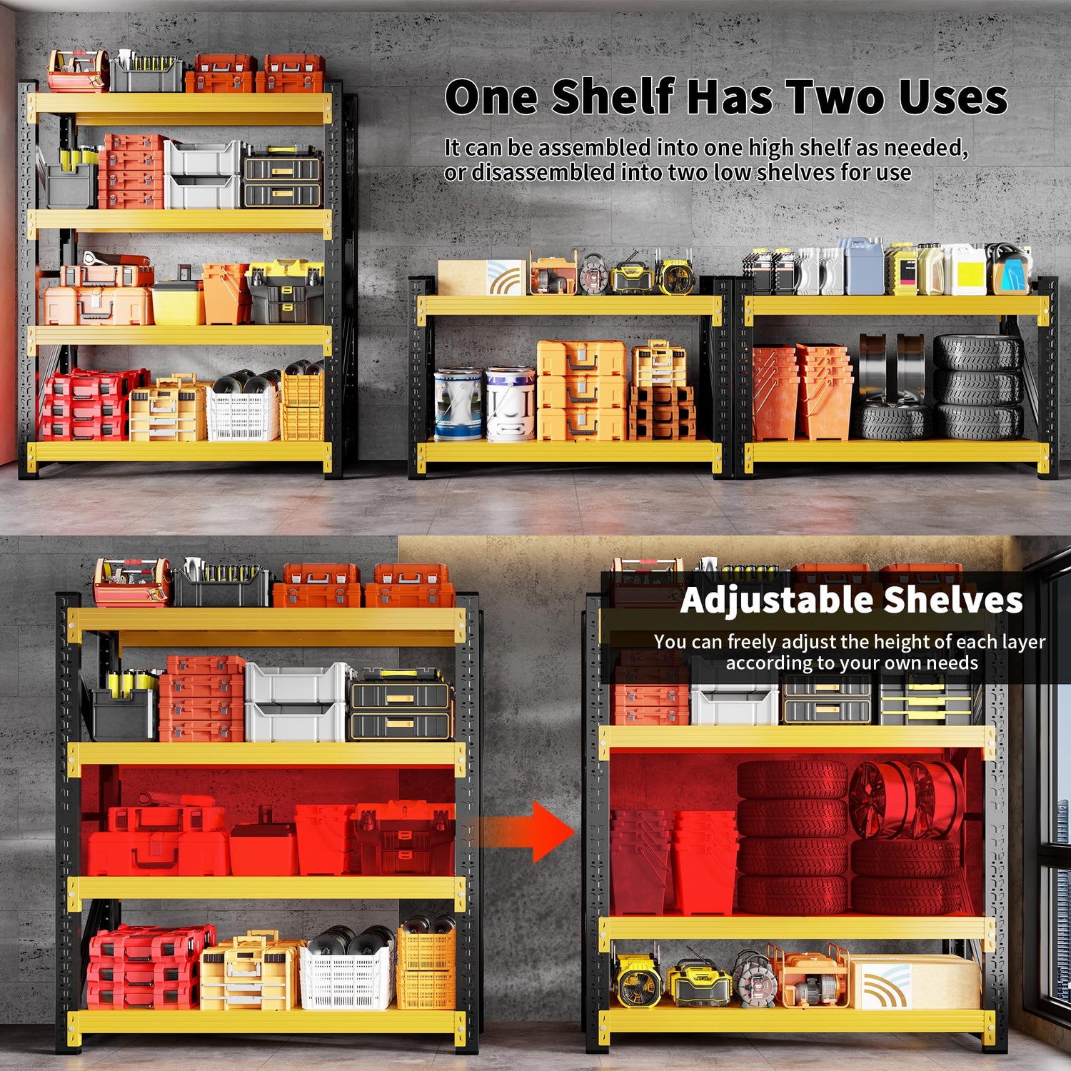 CXUZCZ 5000LBS Heavy Duty Garage Shelving 59" W Garage Storage Shelves 4-Tier Metal Adjustable Shelf Unit Storage Rack for Basement Supermarket Warehouse 59" W x 24" D x 78" H Yellow
