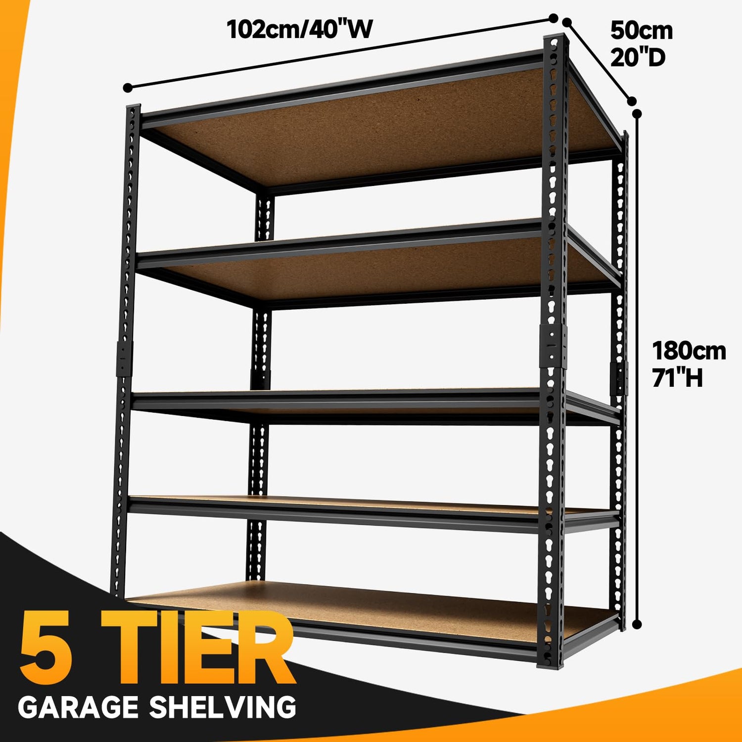 - 40"W x 20"D x 71"H Metal Shelf: Built to last, this heavy-duty shelving unit features a premium powder-coated finish that resists moisture, rust, and corrosion—perfect for garages, basements, warehouses, workshops, kitchens, offices, and more. Whether storing tools, bins, or supplies, this shelf keeps everything organized and protected.