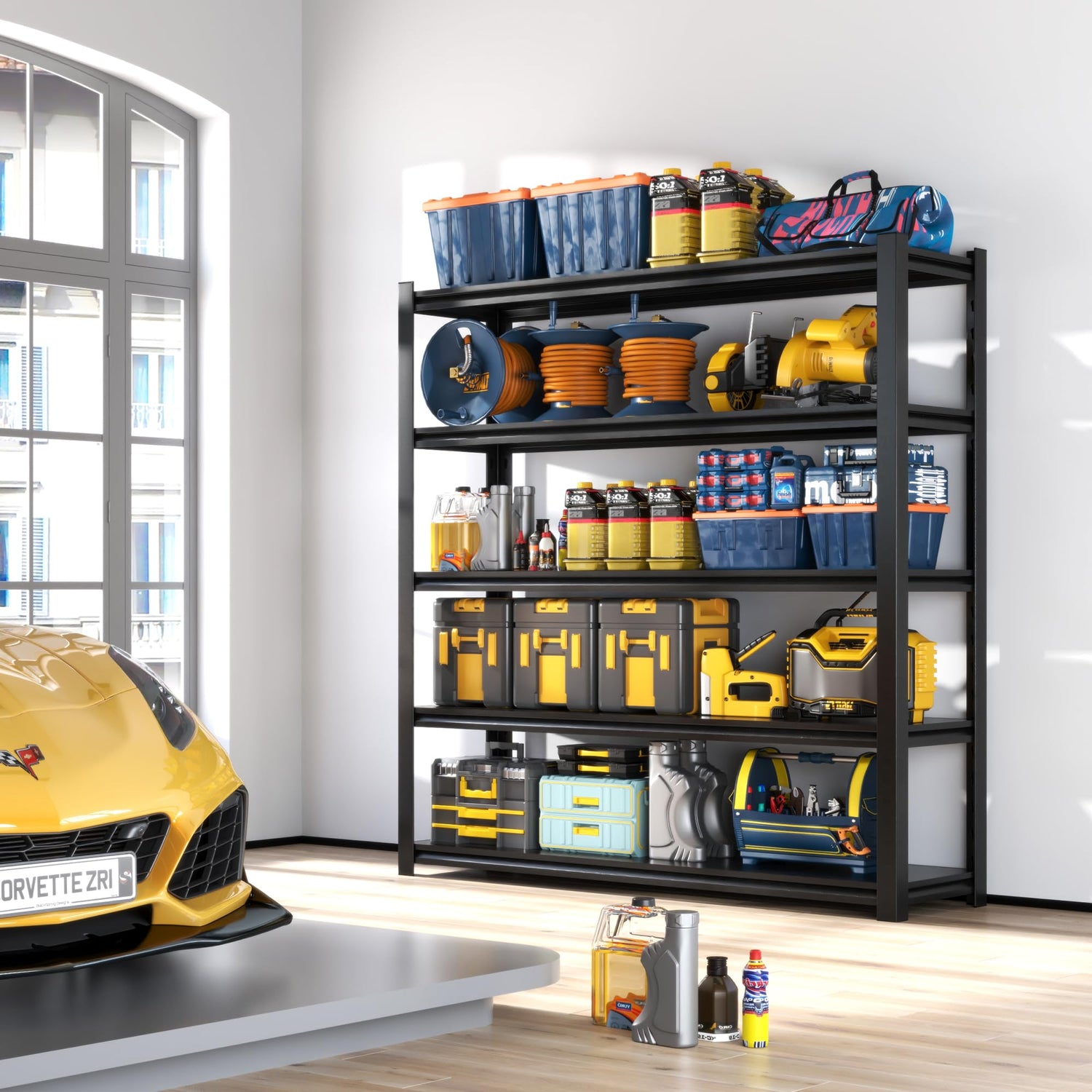 DARTIIA 72" H Garage Shelving 3000LBS Heavy Duty Storage Shelves Adjustable 5 Tier Metal Shelves for Storage Garage Industrial Shelving Utility Racks,24" D*48" W*72" H,Black