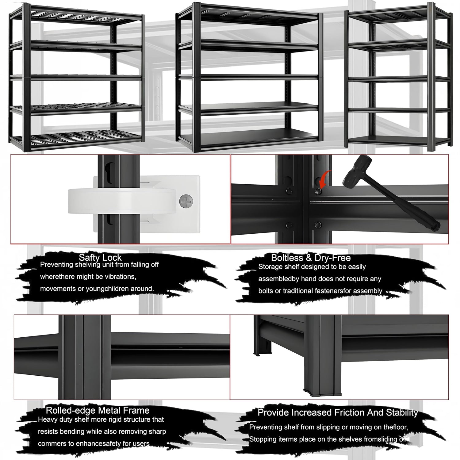 - PROFESSIONAL ORGANIZATION: Black powder-coated finish adds sleek appearance while offering superior organization for power tools, supplies, and industrial equipment.The shelves 's surface of the shelves is coated with a rust-resistant,You don't have to worry about warping,all-steel construction, with excellent scratch and impact resistance,not easy to produce scratches,convenient surface cleaning,providing stable and reliable storage space for your items.Includes protective post caps and anti-tipping kits for enhanced stability and secure installation,ensure that your items are securely stored.offering enhanced security for both your belongings and workspace.