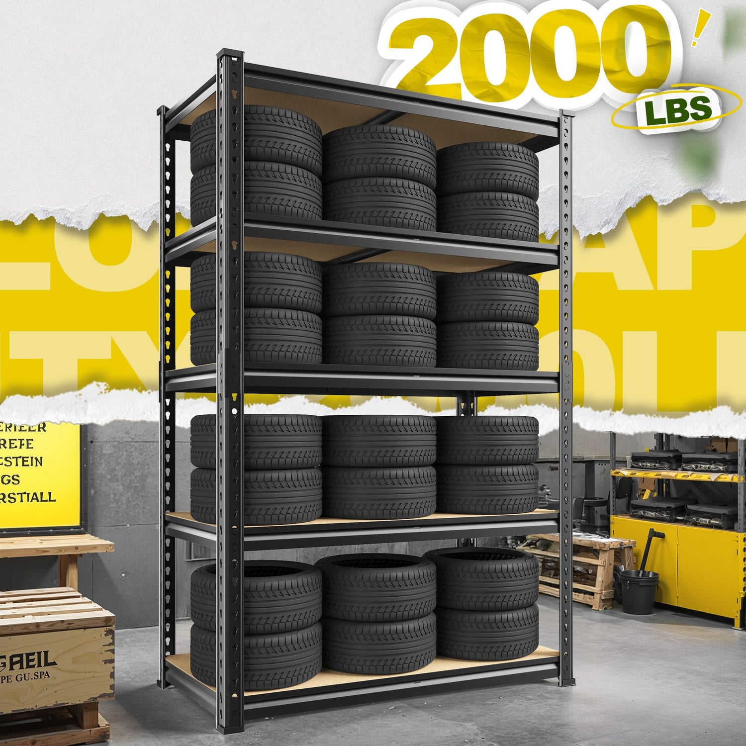 - 【Multipurpose Storage Shelves】The 5 tier adjustable shelf design allows for effective classification and organization, catering to your storage requirements for a variety of items such as garage tires, storage tools, storage boxes, food, and so on. 63"H*31.5"W*15.7"D provides sufficient storage space. It is ideal for maintaining a neat and orderly space in the garage, warehouse, closet, pantry, basement, kitchen, shed, office, living room, school, library, supermarket and more