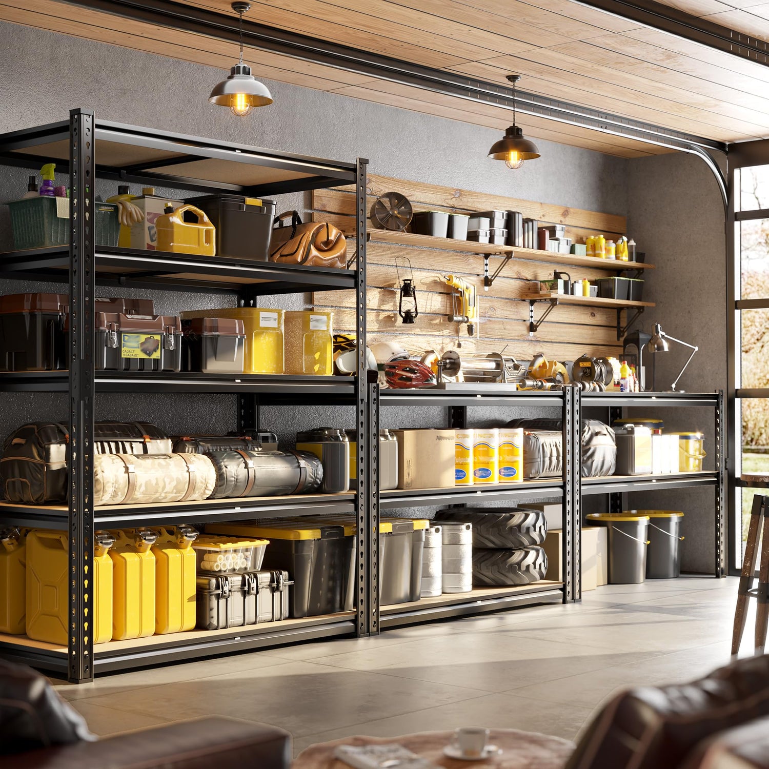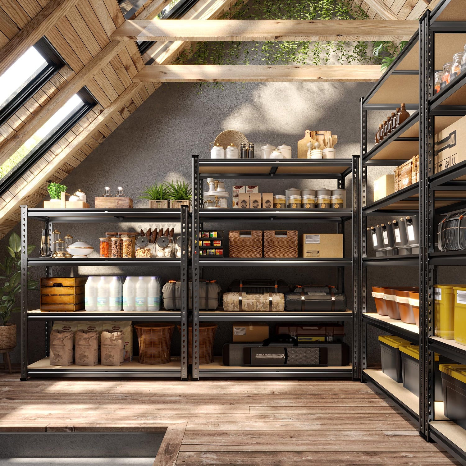 DurayLoly 72" H Garage Shelving, 5 Tier Storage Shelves Load 2500 lbs, Adjustable Garage Shelves, Metal Shelving Unit for Warehouse, Basement, Pantry, 40" Wx 16" D x 72" H, Black