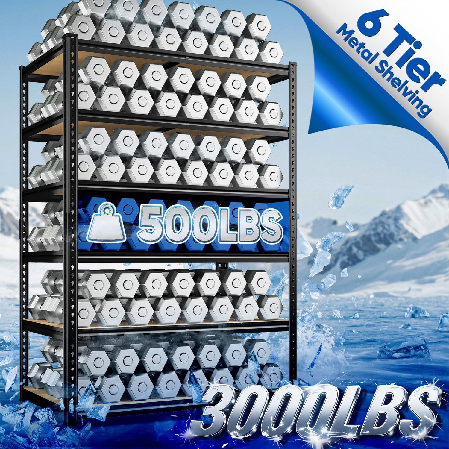 - 【3000 lbs Metal Shelving 】DurayLolyI's 6-tier shelving supports 500 lbs per shelf (3000 lbs total), reinforced with crossbars and 0.7 mm-thickened columns. Ideal for storing automotive parts, bulk supplies, or workshop equipment with industrial-grade durability