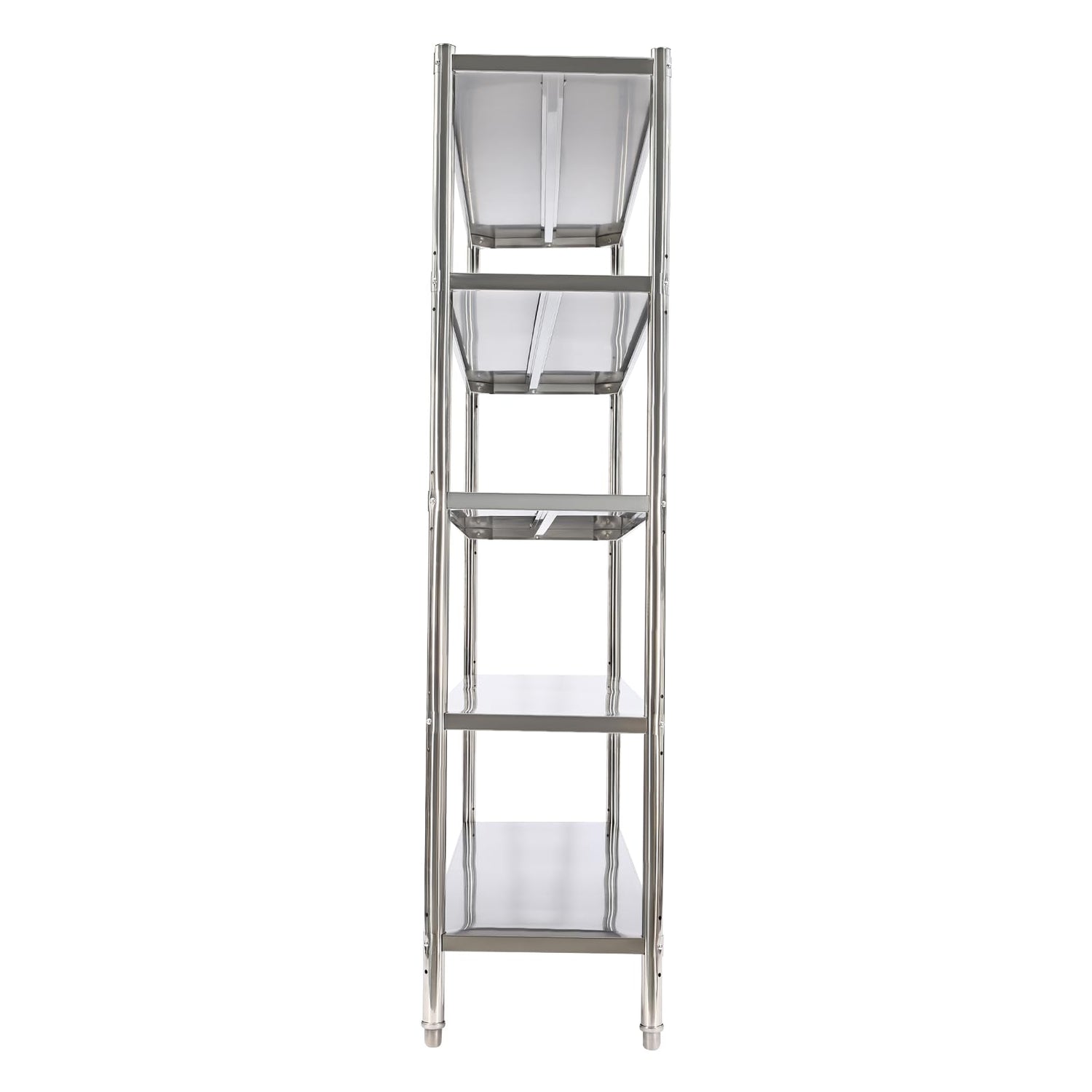 The combination of high-quality materials and exquisite craftsmanship makes this stainless steel shelving sturdy and durable. The strong load-bearing capacity allows you to store items with confidence. The generous appearance can decorate various storage areas. In addition, you can adjust the height of each layer according to different sizes of items. In short, it is an efficient solution for displaying and storing items.
