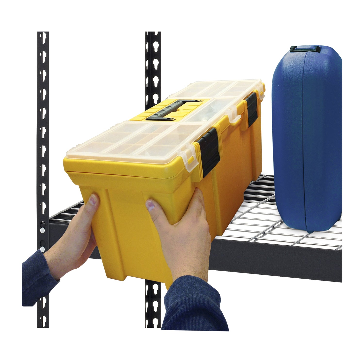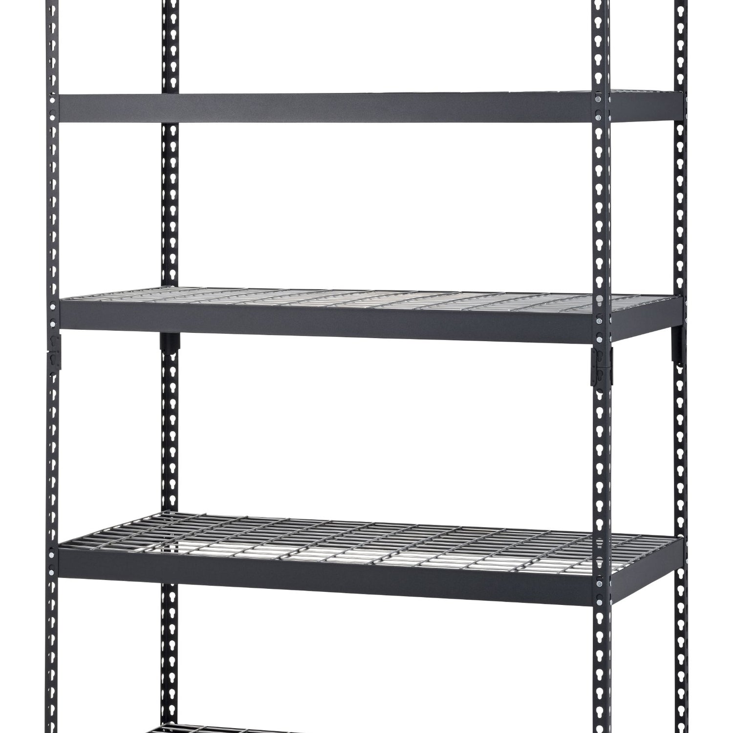- Shelving unit with five adjustable wire shelves and a 1,000 lb. per shelf capacity, evenly distributed, is suitable for organizing and storing items