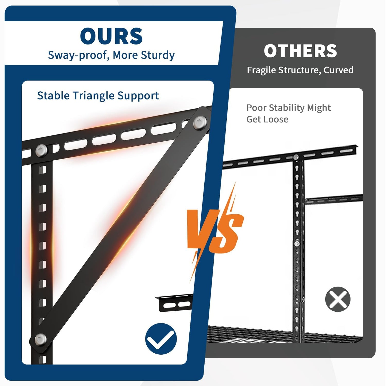 - 【3X Stability Boost】Upgraded triangle support eliminates swaying during loading heavy toolboxes or item retrieval, holding heavy motorcycle tires (up to 75lbs each) securely compared to shaking L-shaped racks.