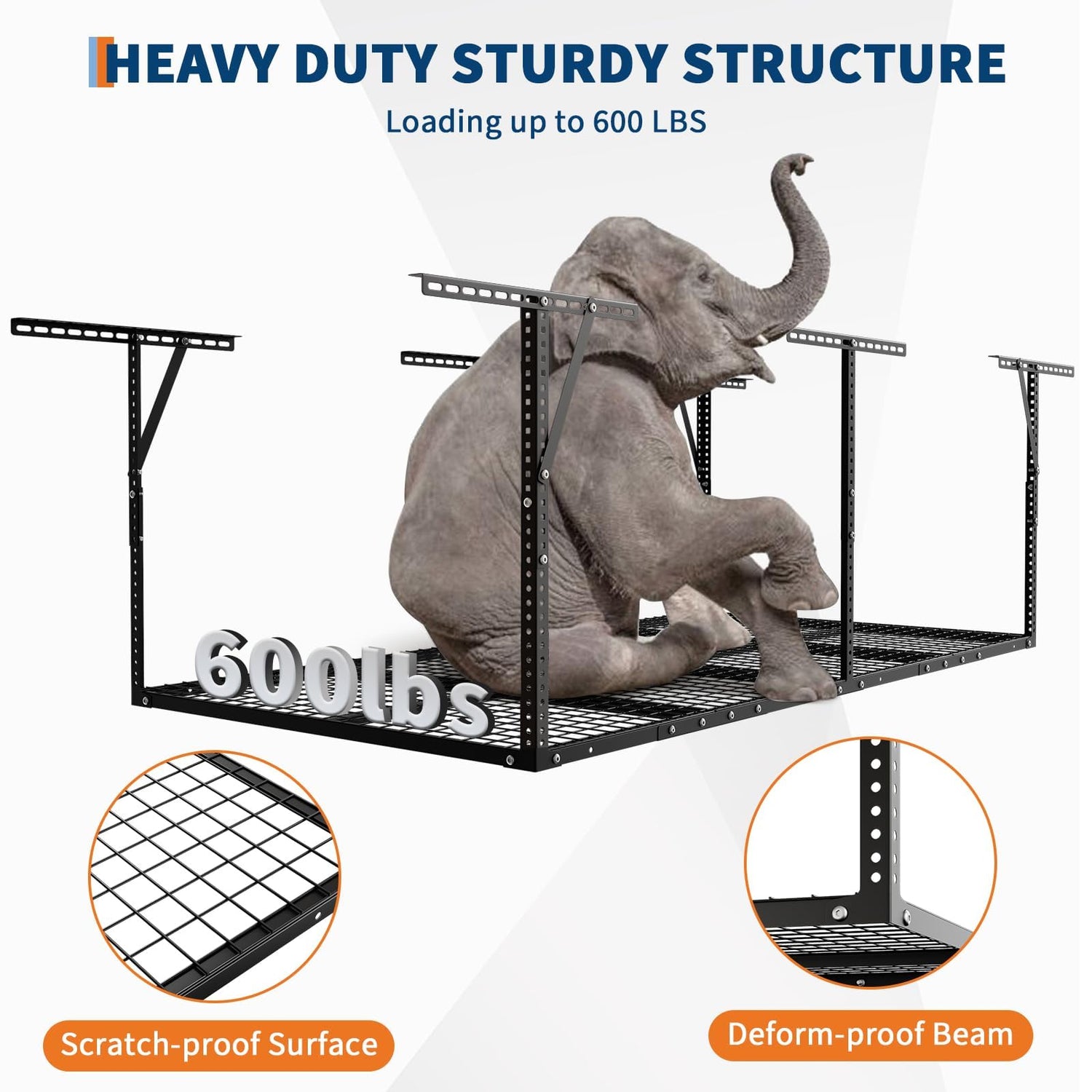 - 【80 Cu.Ft Overhead Rack Capacity】Holds 4 winter tires + 6 camping gear bins + 8ft holiday items- perfect for seasonal rotation while keeping floor space clear for 2-car garages.