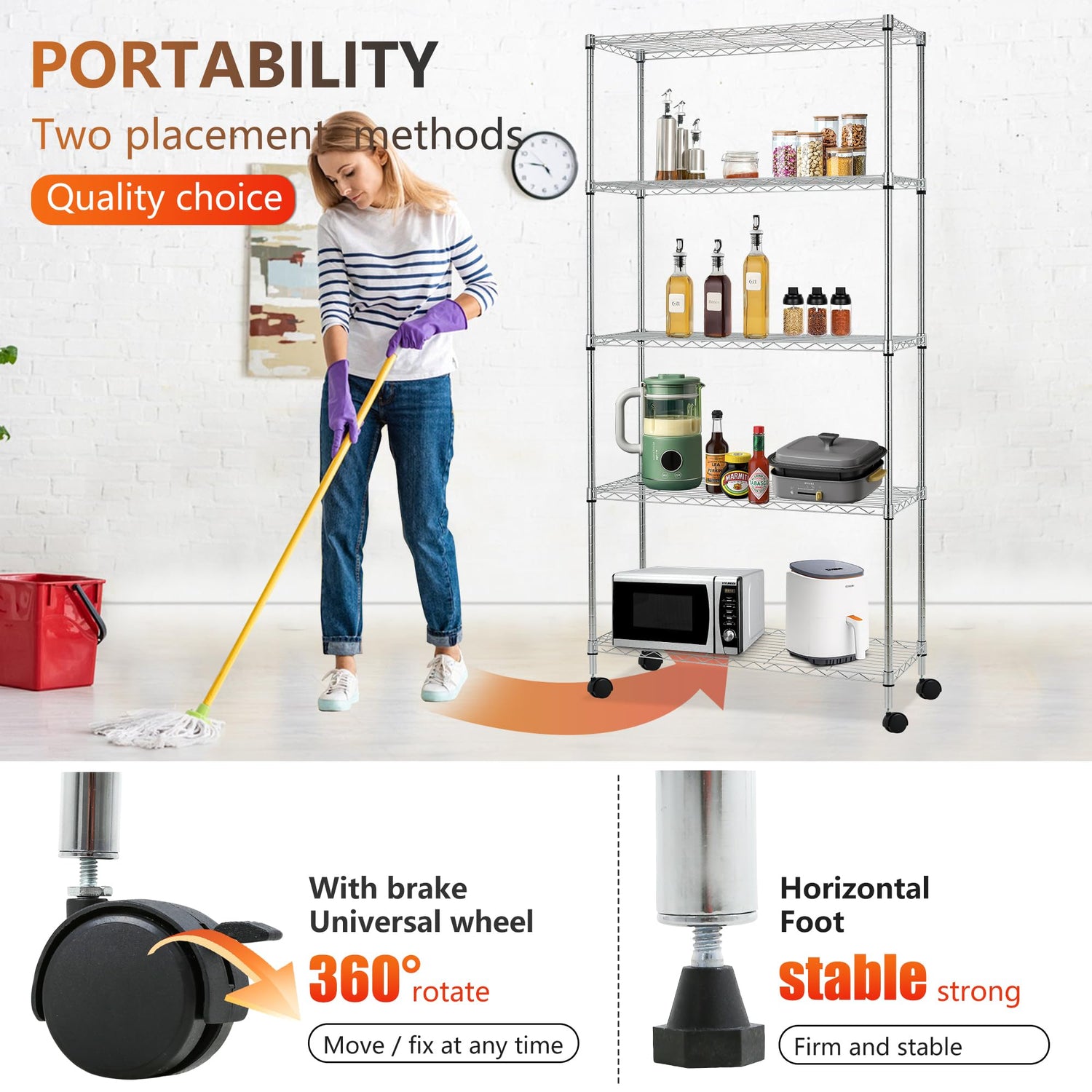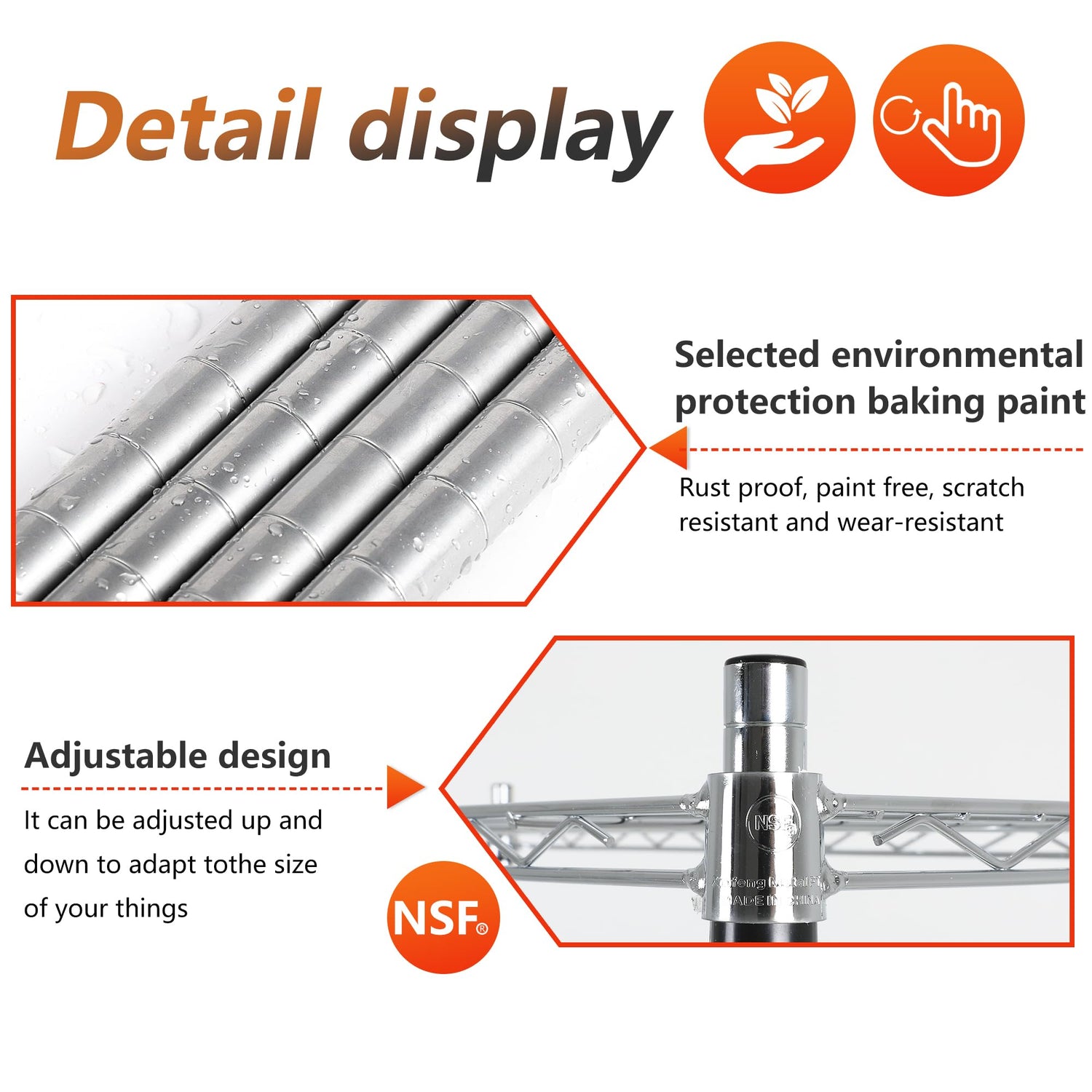 - CUSTOMIZABLE HEIGHT OPTIONS: Adjustable wire shelving design lets you tailor spacing between two racks for closet storage, garage shelving, or kitchen organization. Perfect for varying item sizes.