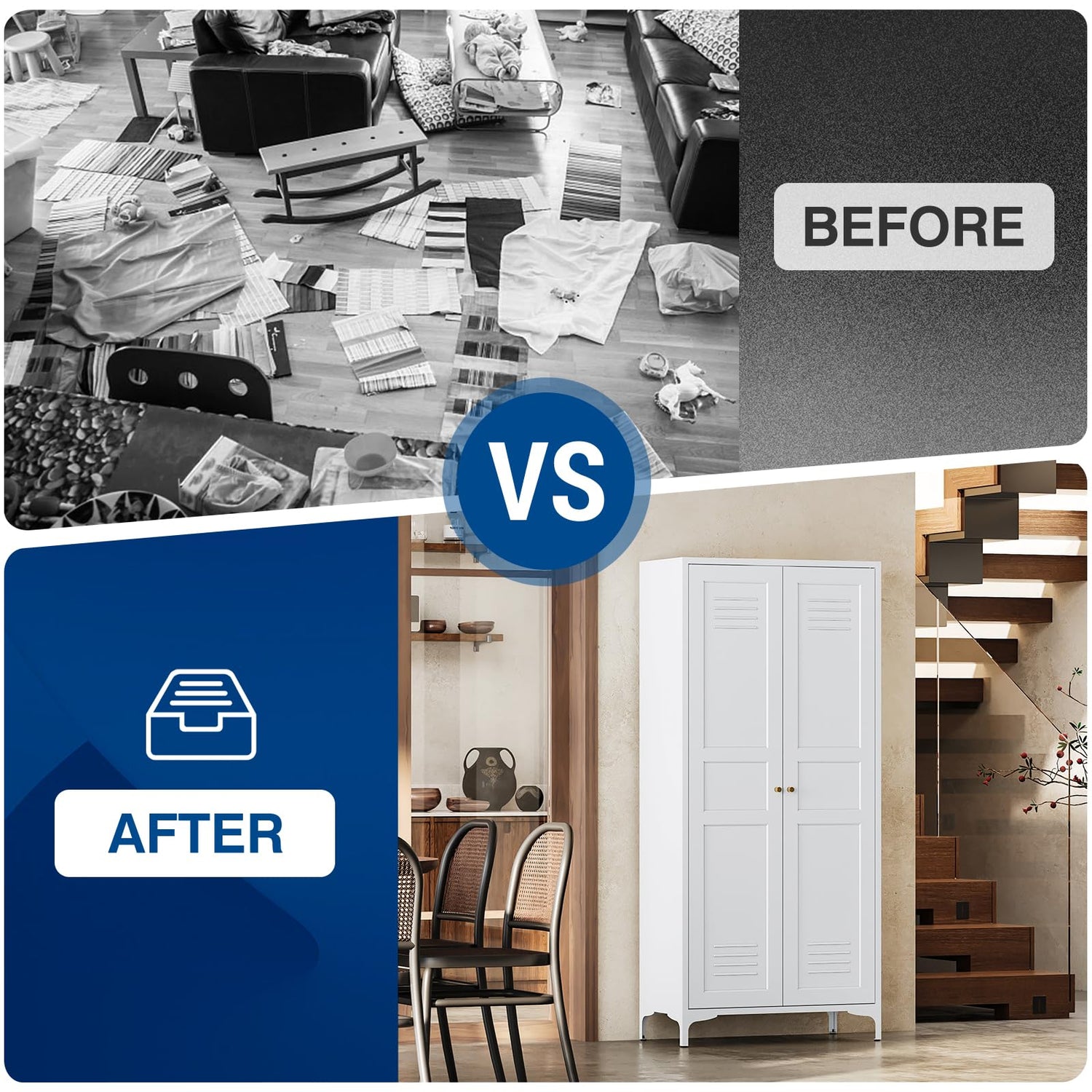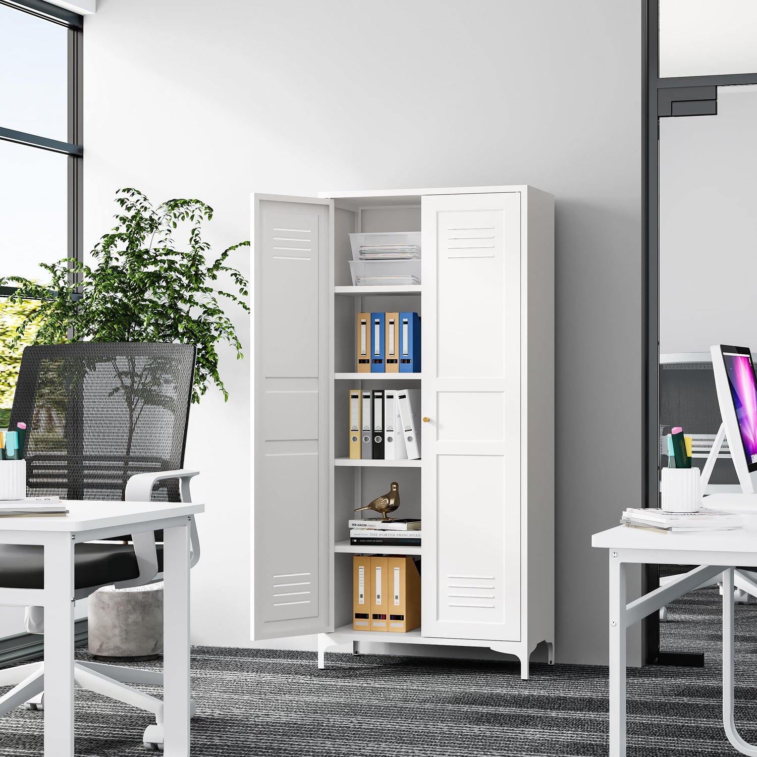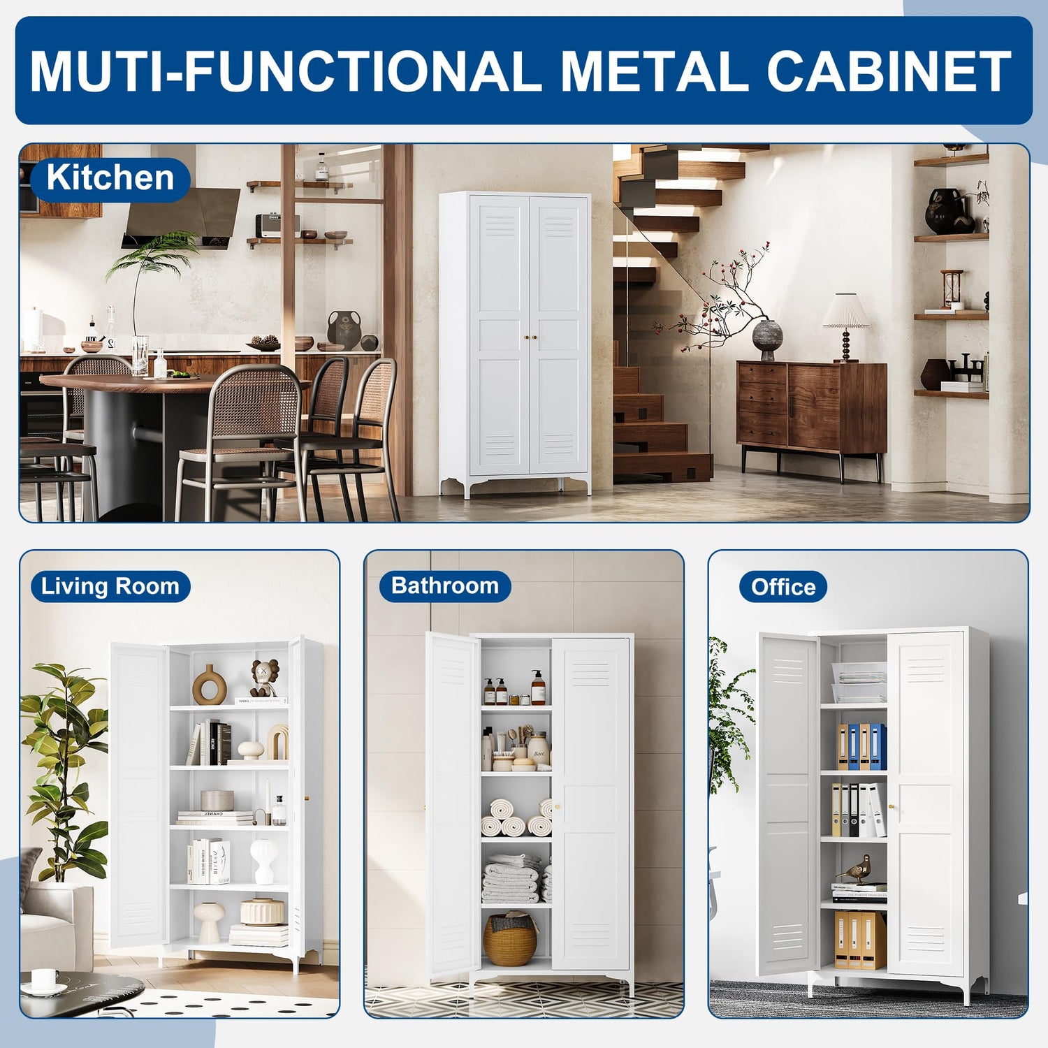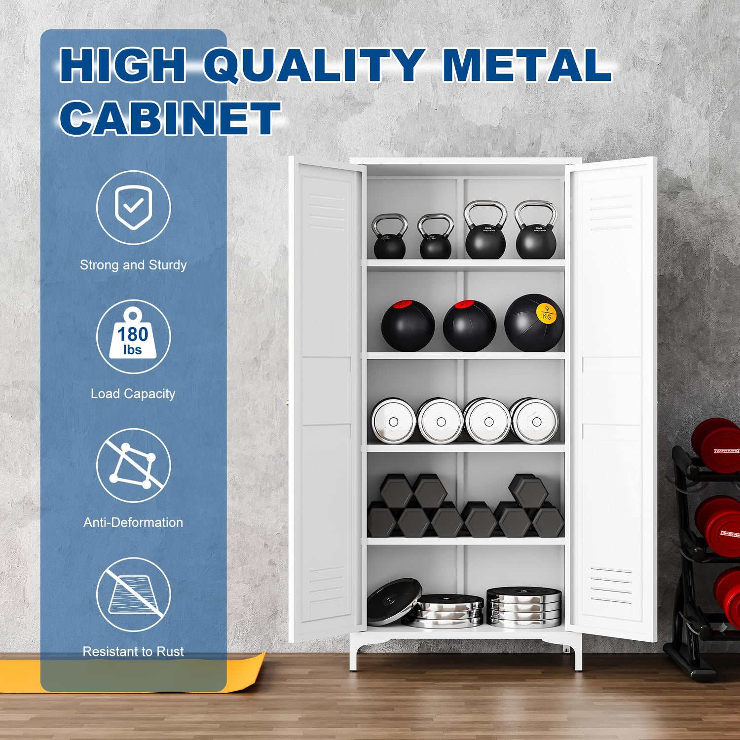 Fesbos Metal Storage Cabinet-61” Tall Steel File Cabinets with Doors and 4 Adjustable Shelves-White Steel Storage Cabinet for Home,Kitchen, School, Office, Garage