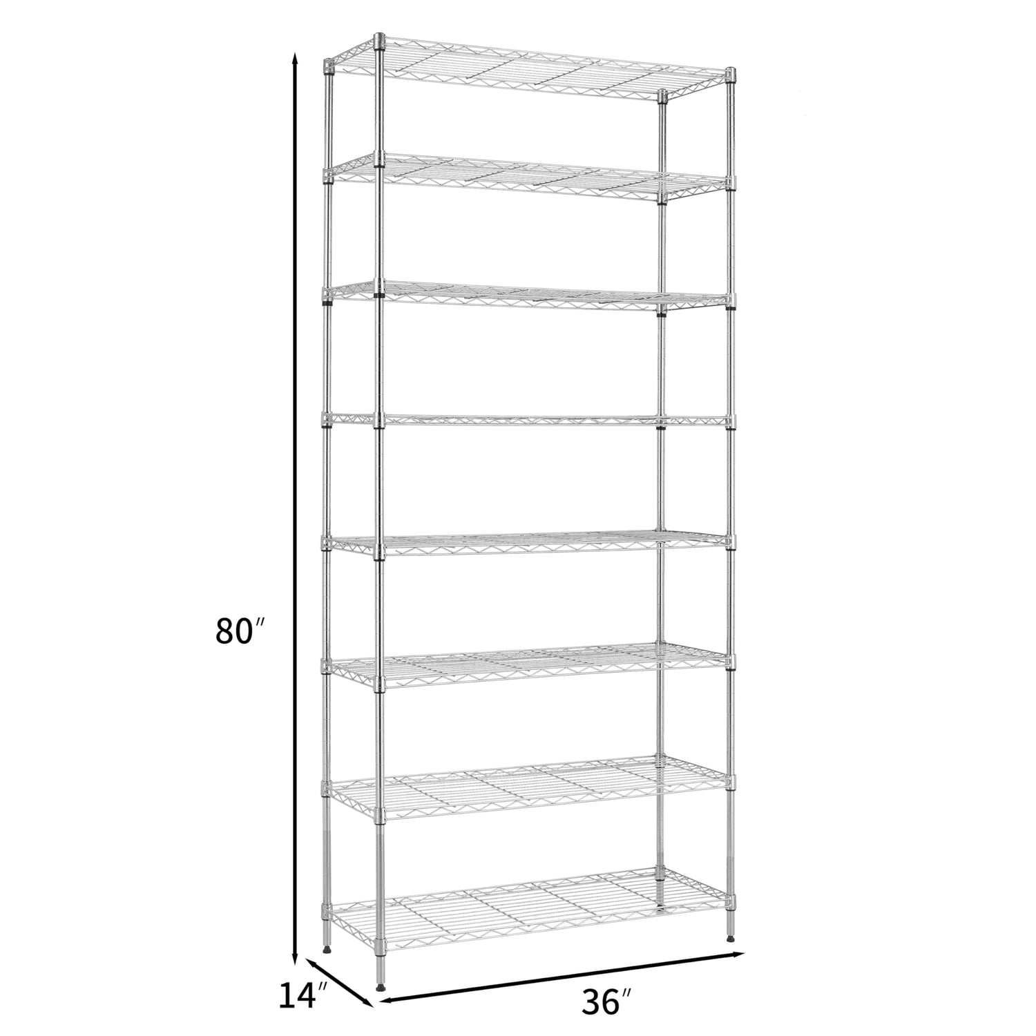 • UPDATE & OPTIMIZE - A lot of customers who bought our 8 tier wire shelving rack want to make the rack wider, so we have developed a new shelving unit which shelf size is 14x36 with 80 inches height and have 8 shelves, wider shelves and 80 inches tall rack can maximize your storage space and make your home storage more flexible. Let's diversified storage and easy access in kitchen, office, garage and more.