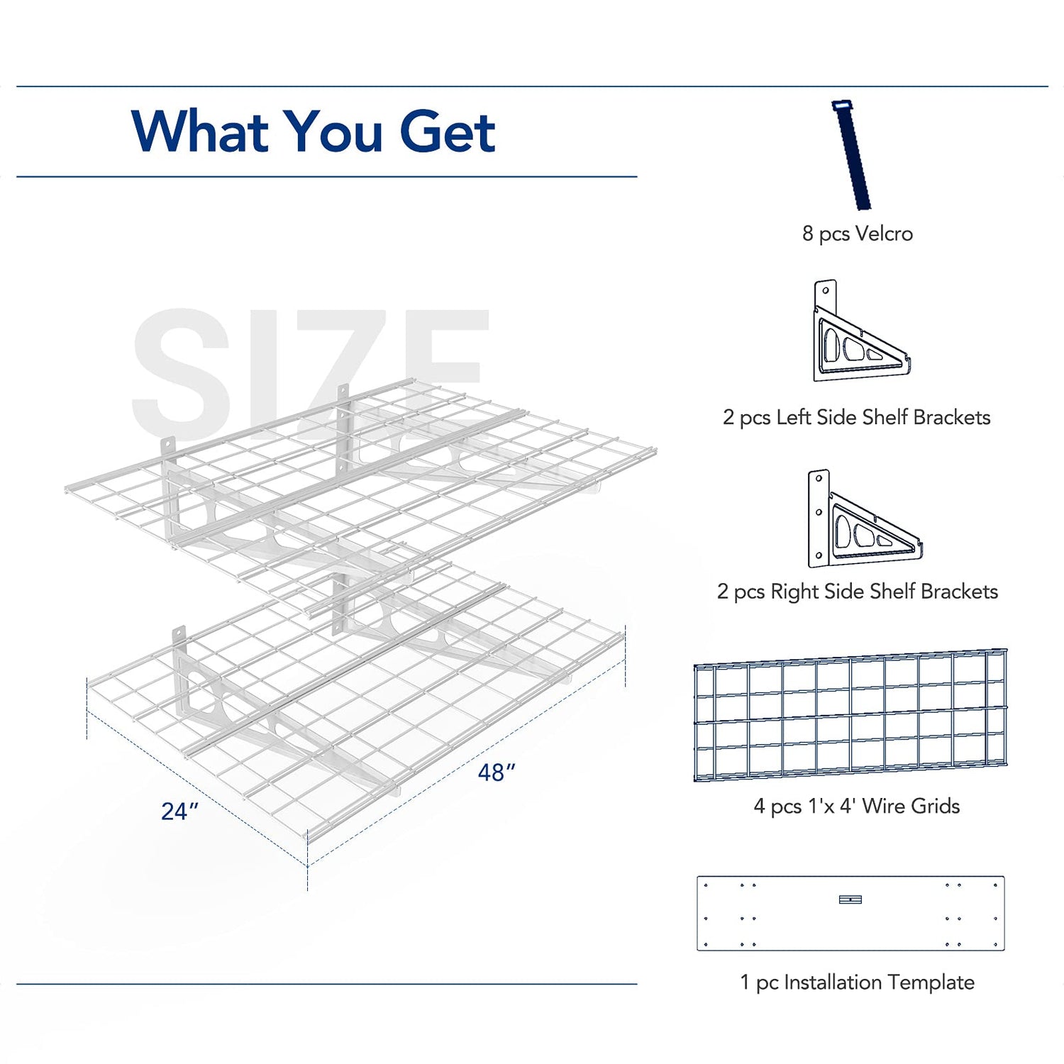 FLEXIMOUNTS 2-Pack 2x4ft 24-inch-by-48-inch Wall Shelf Garage Storage Rack Wall Mounted Floating Shelves, White