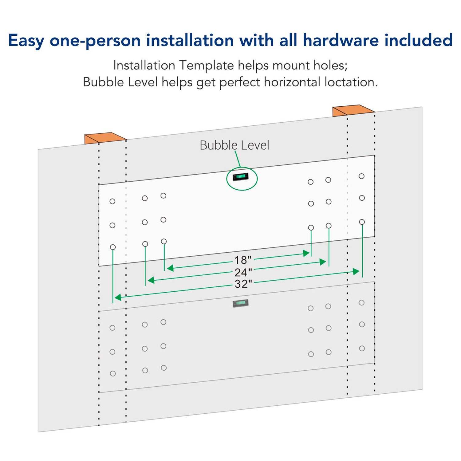 - Easy Installation: Easy one-person installation with all hardware included: Installation Template helps mount holes; Bubble Level helps get perfect horizontal location.