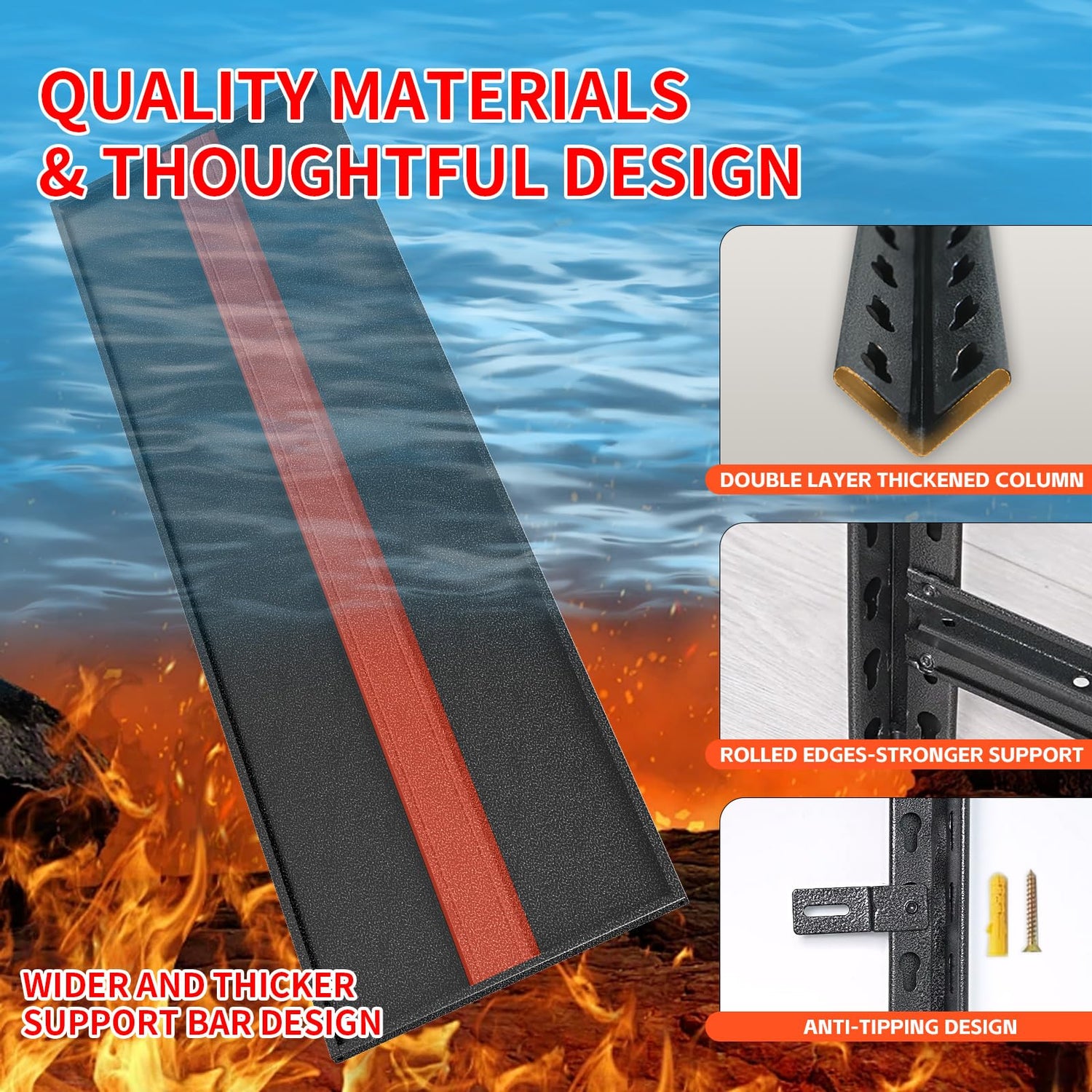 - 2800LBS Heavy Duty Garage Storage Shelves: FOGQUEEN storage shelves are constructed of high quality steel with a thickened double tier post design and a bottom support bar design for the shelfs. The metal shelves have a total capacity of up to 2800lbs and 560lbs per tier.