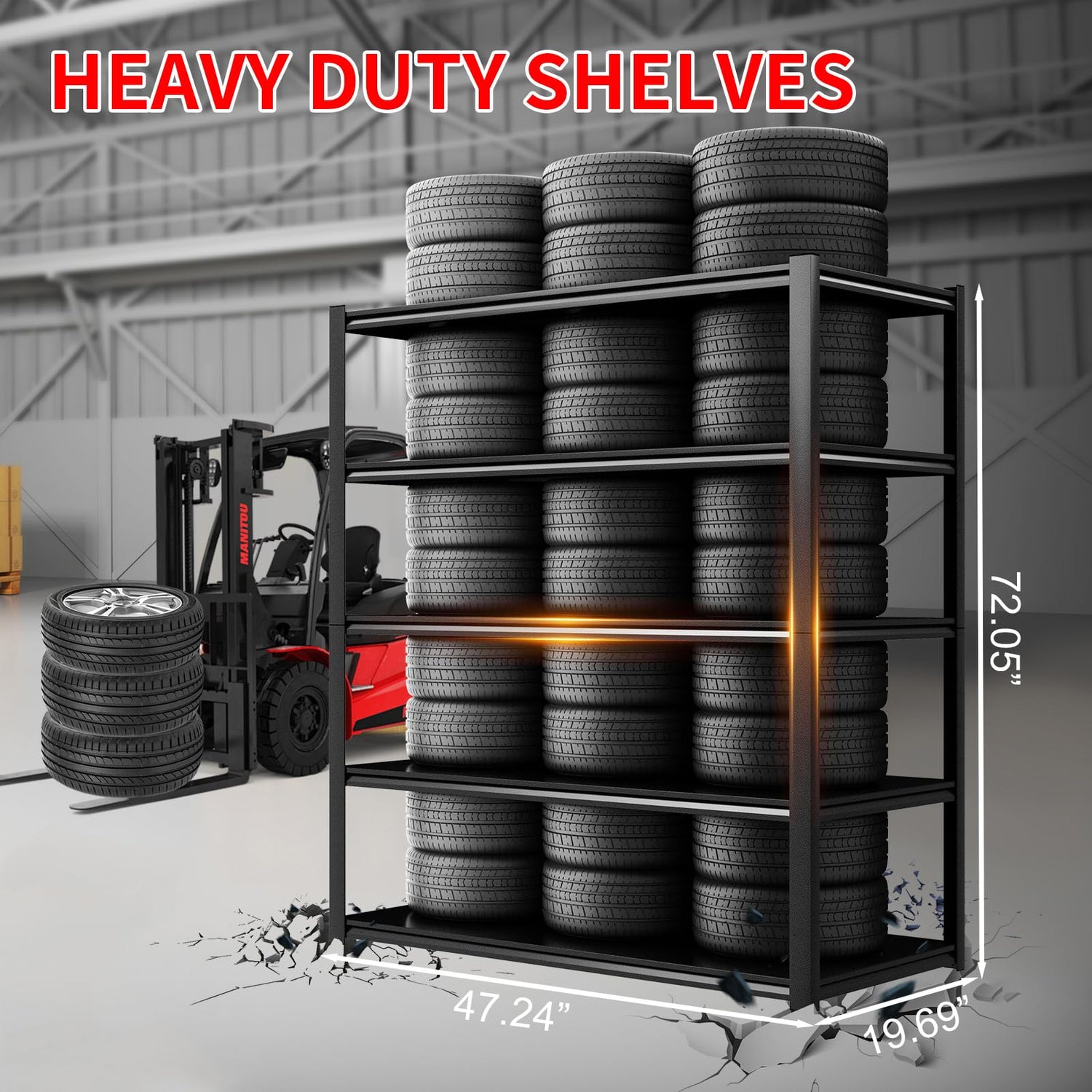 - Wider, Deeper, Higher Load-bearing Capacity: The heavy duty shelving measures 47.25"W x 19.7"D x 72"H. The wider and deeper design makes the shelves a must-have match for garages, warehouses, basements, and utility rooms. The extra large capacity perfect for tackling space clutter.
