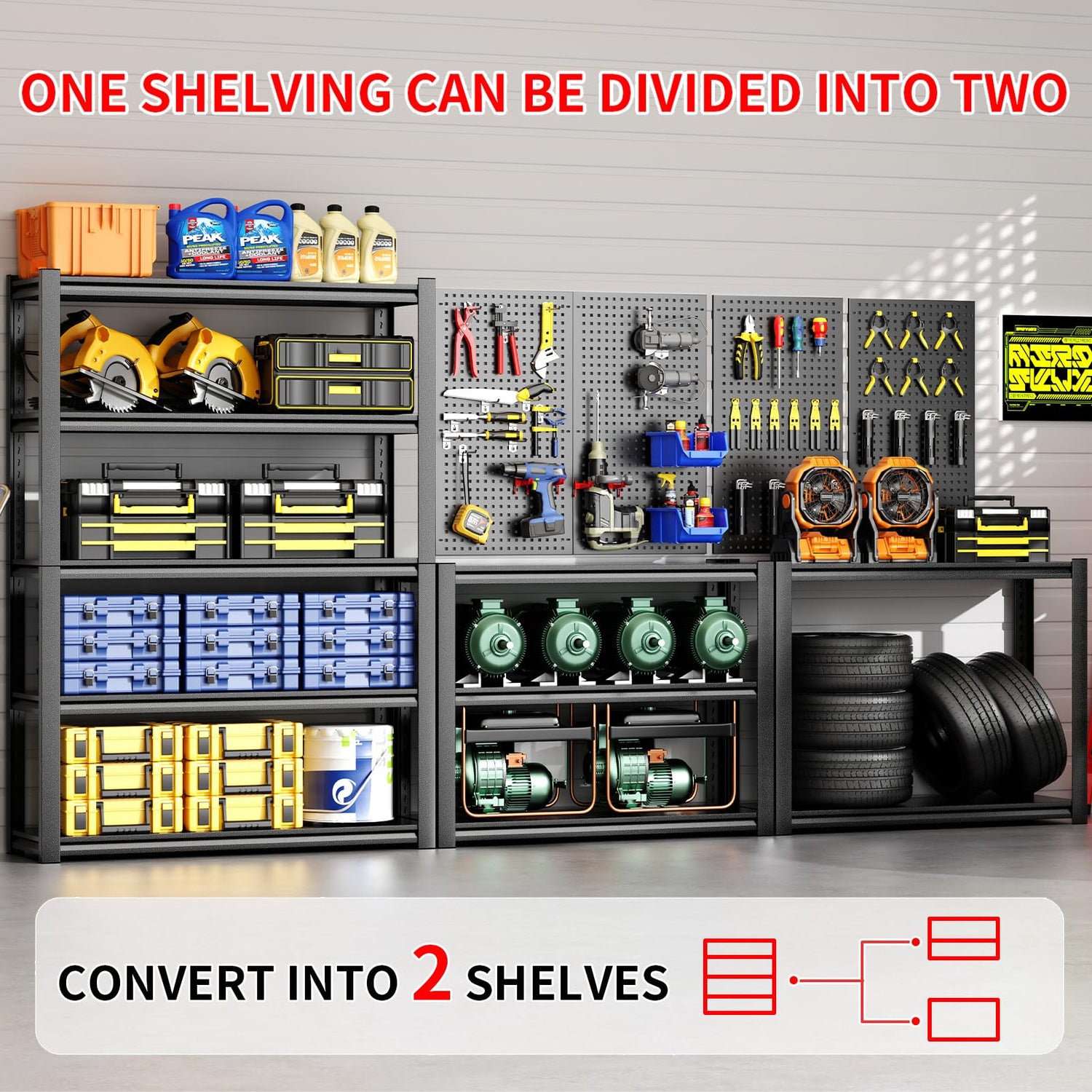 - Quick Assembly for One Person in Just 10 Minutes: The garage storage shelves have a special interlocking design that allows you to quickly assemble them yourself in less than 10 minutes. No need for nuts and bolts, we already have a mounting hammer and gloves in the package for you.